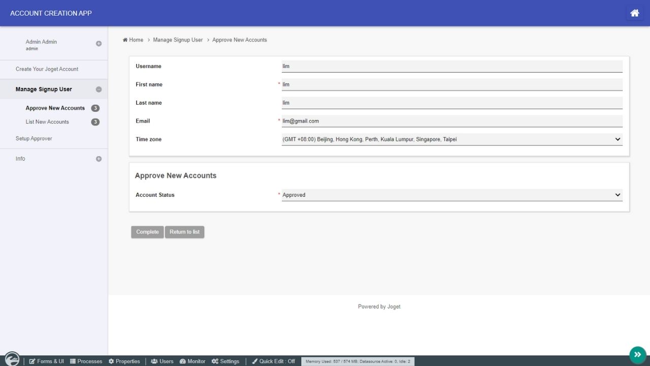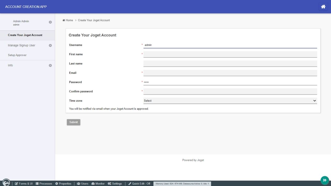 Welcome to the Account Creation App for public users to sign-up into Joget.