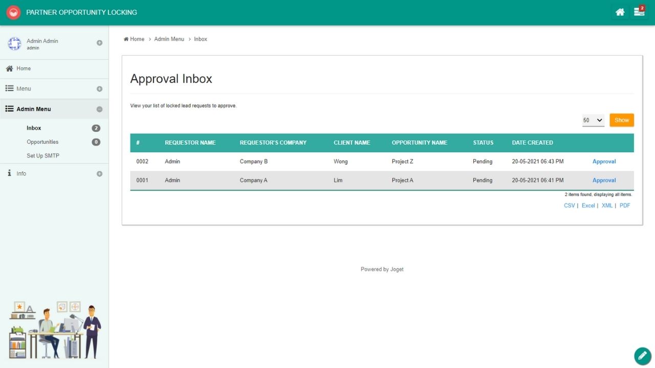 Create, track, and manage your Partner Opportunities Locking with this app on Joget.