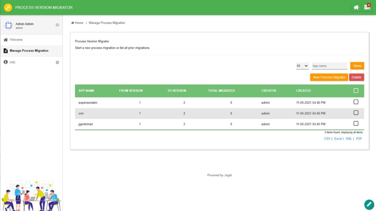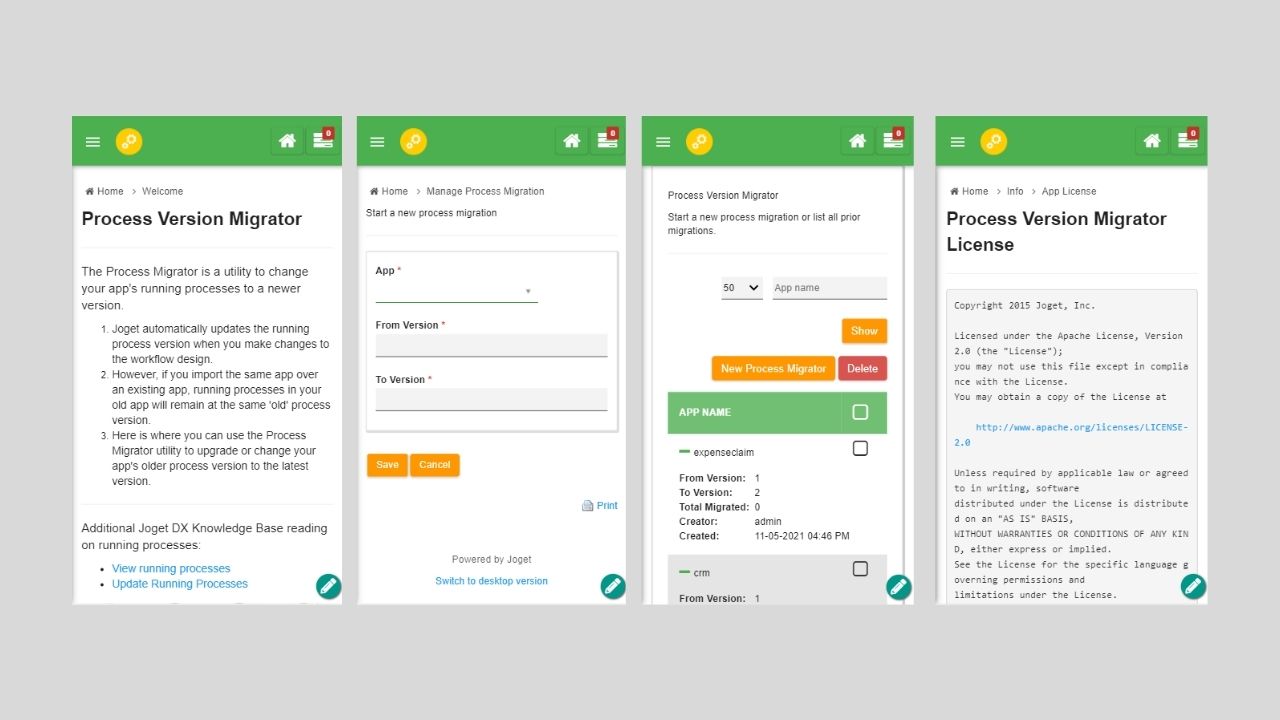 The Joget Process Version Migrator is a utility to change your app's running processes to a newer version.
