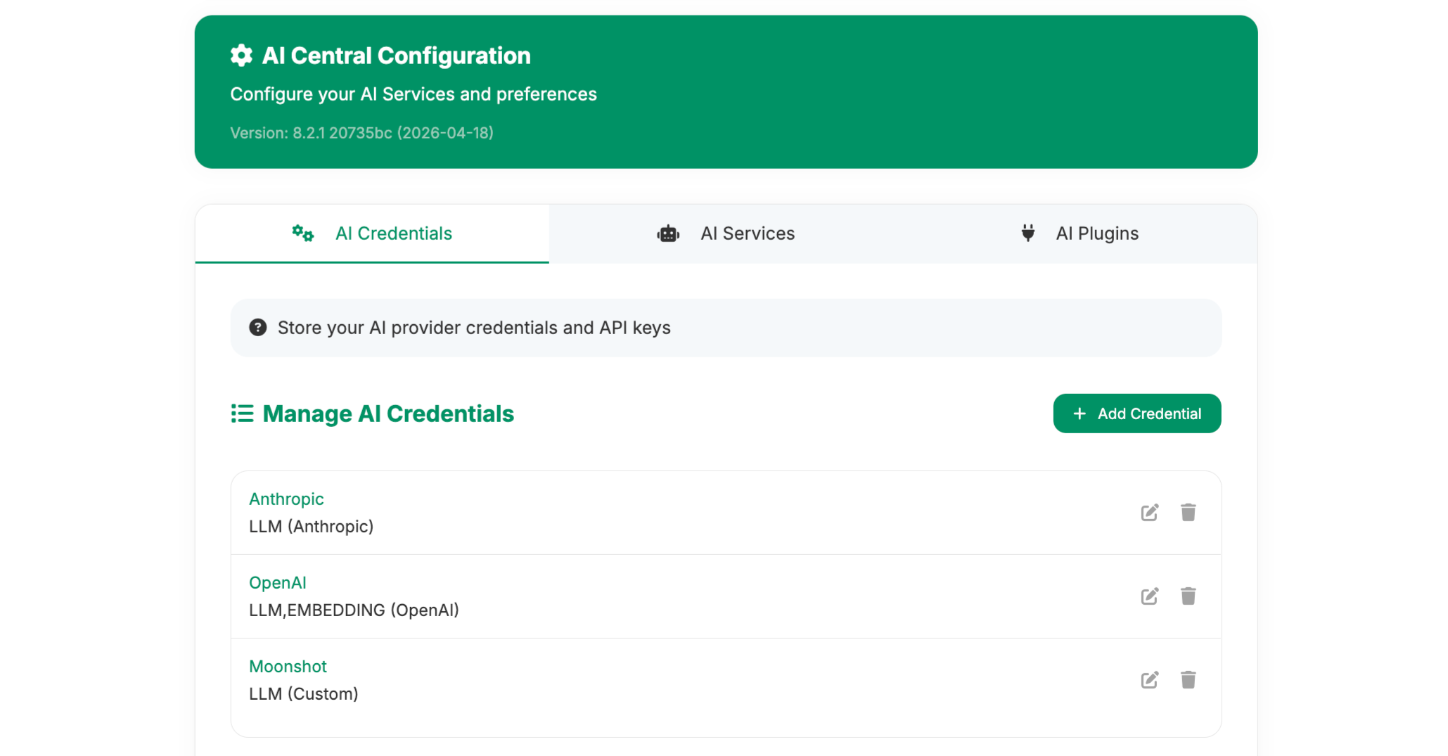 - Centralized credential management for all AI providers