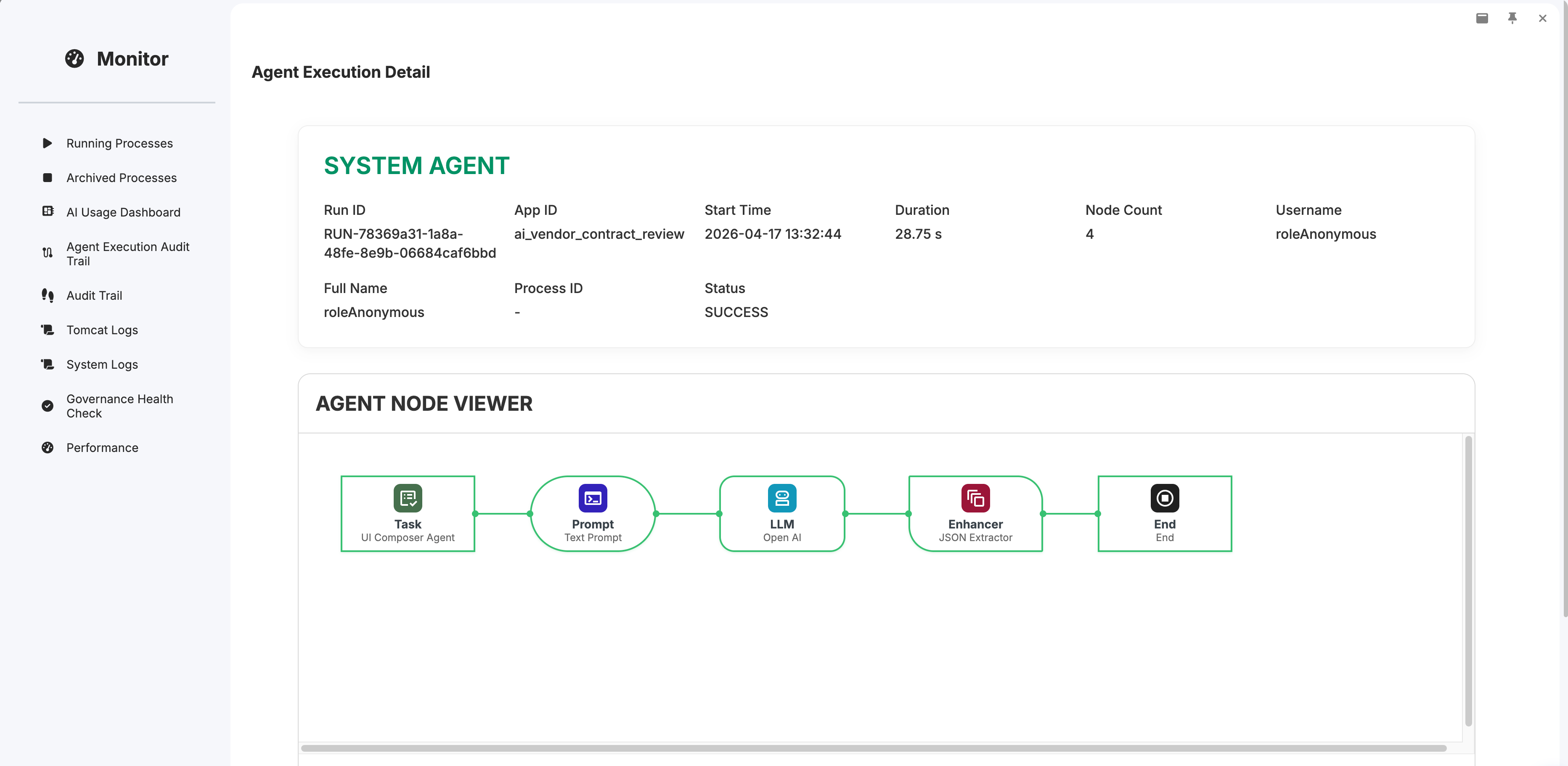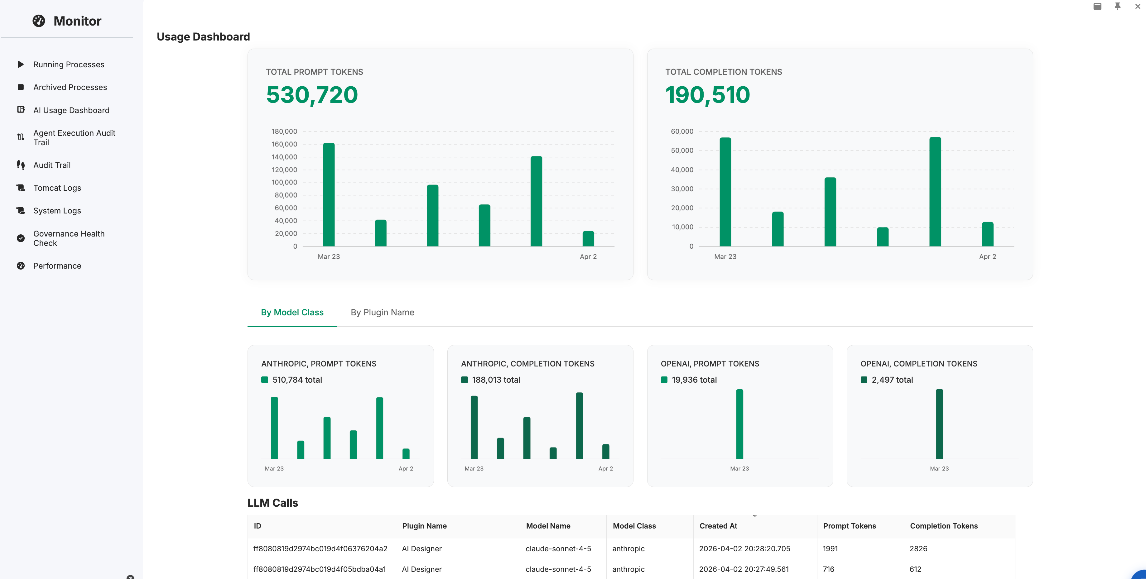 3. Agent Execution Audit Trail & AI Usage Dashboard: All agent runs are now tracked with full execution history, token usage monitoring, and a centralized dashboard to monitor AI activity across your entire Joget platform.