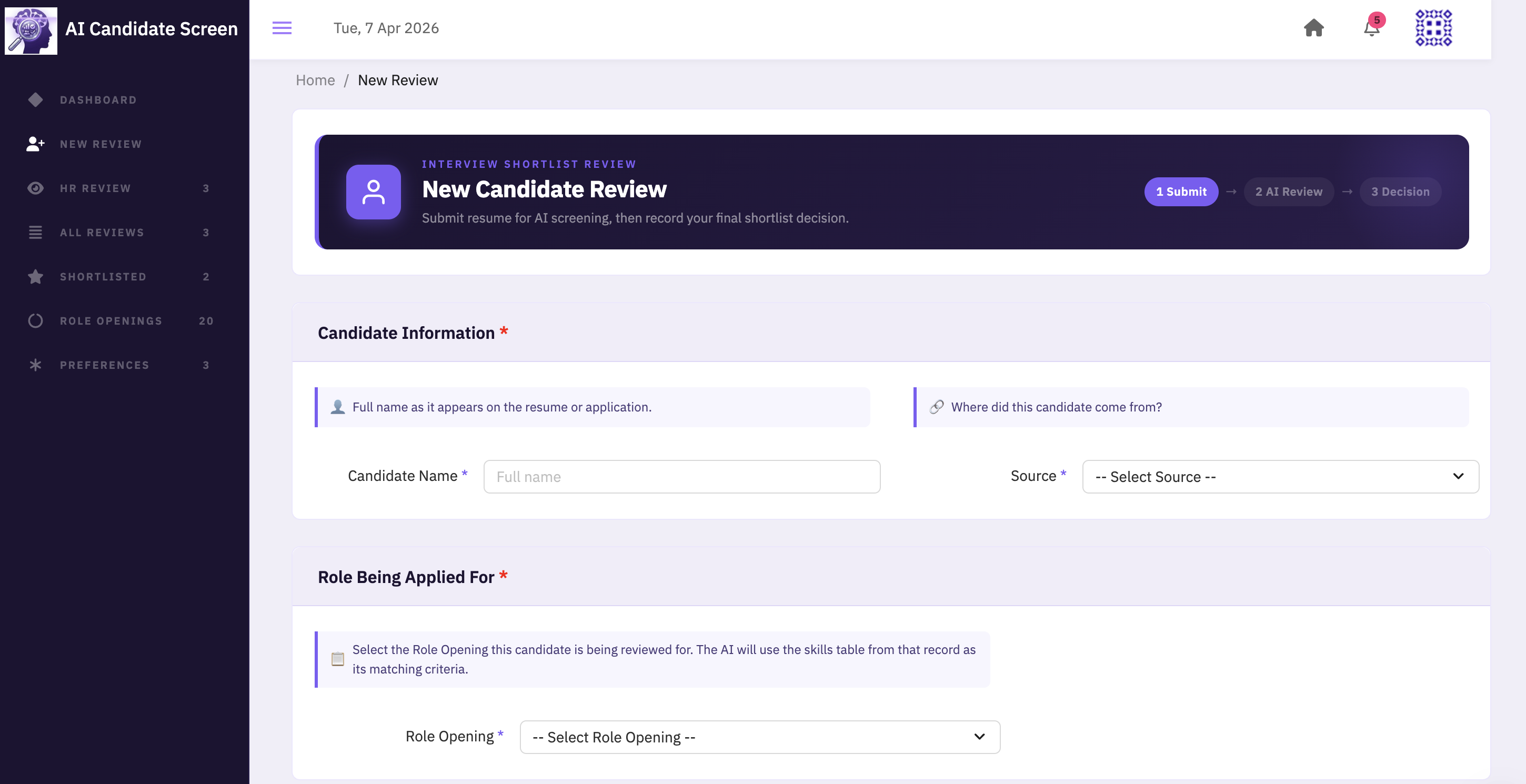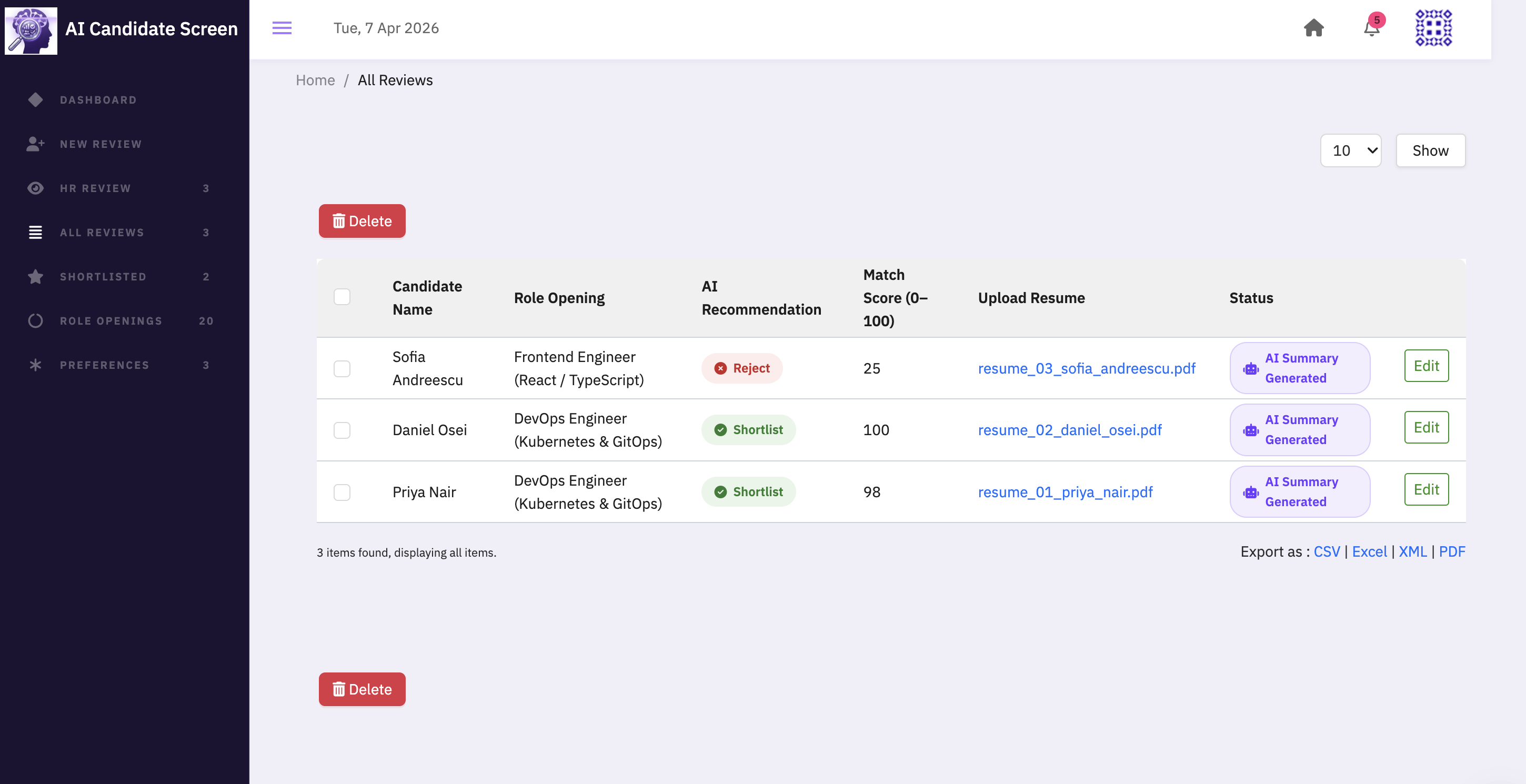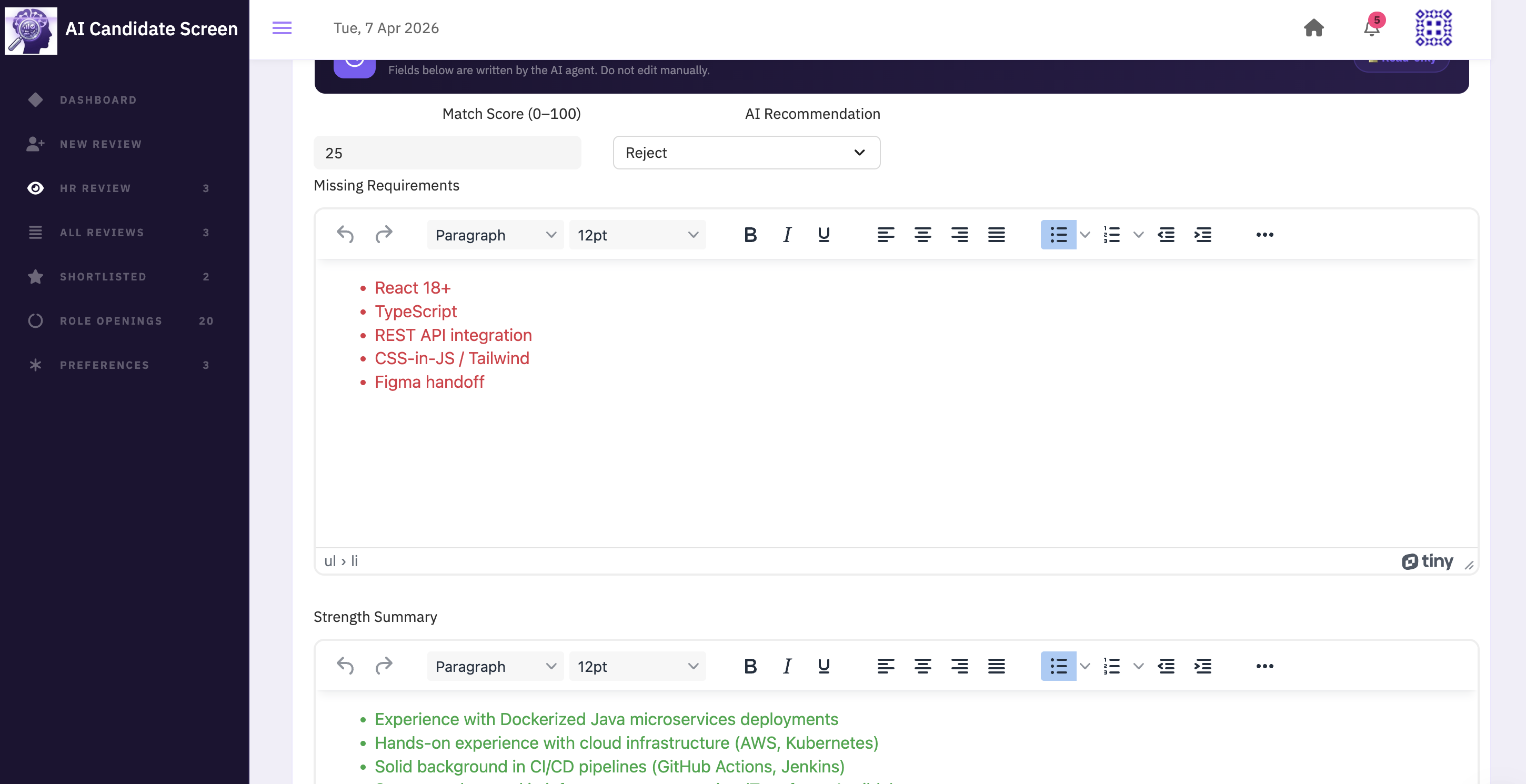 - The AI will show the users whether to shortlist, maybe, or reject the candidate.
