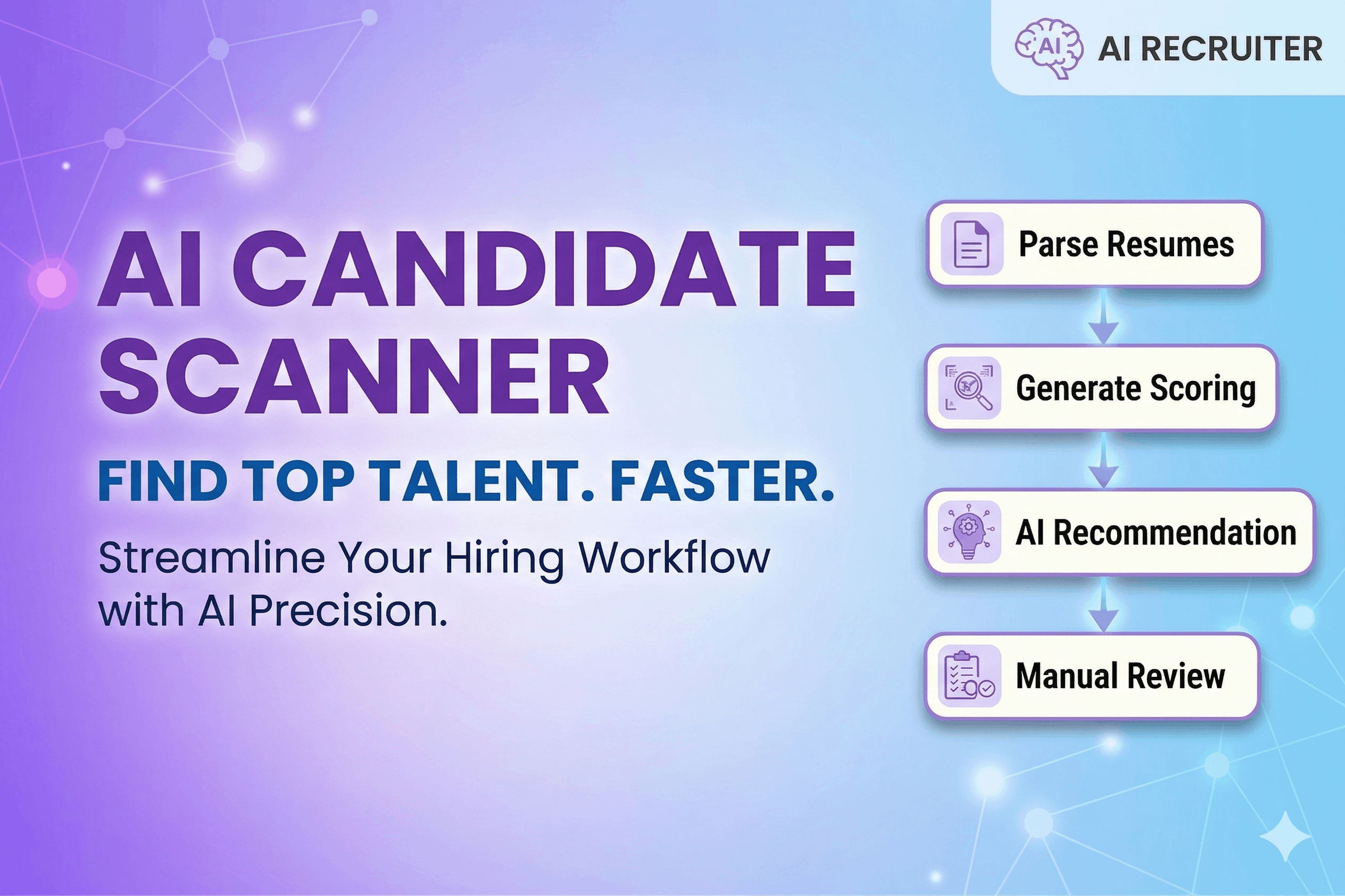 - Every candidate gets an instant match score, a gap analysis against your must-have skills, and a clear recommendation