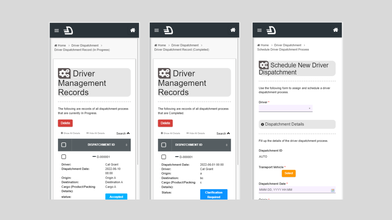 - Drivers will be able to update and check their Dashboard for dispatchment tasks.