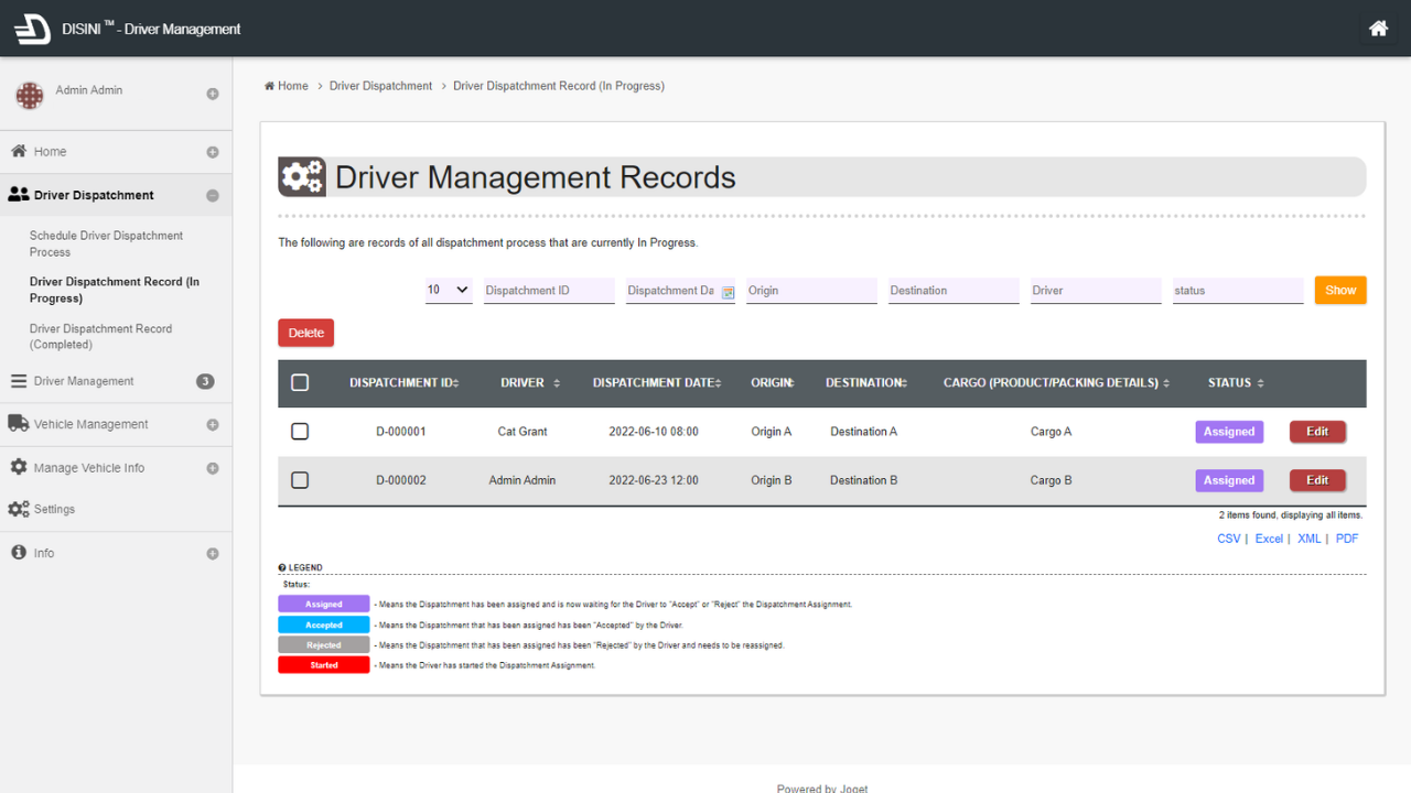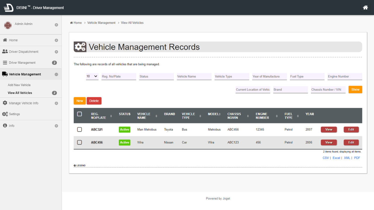 - The DISINITM Driver Management App runs on Joget DX Professional and Enterprise Editions.