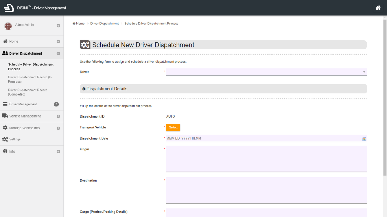As part of the DISINITM Fleet Management App Series, the DISINITM Driver Management App is an application that can be used standalone or in a composable application environment on the Joget DX platform. Enterprises will be able to use the application to manage their drivers and start the driver dispatching process.