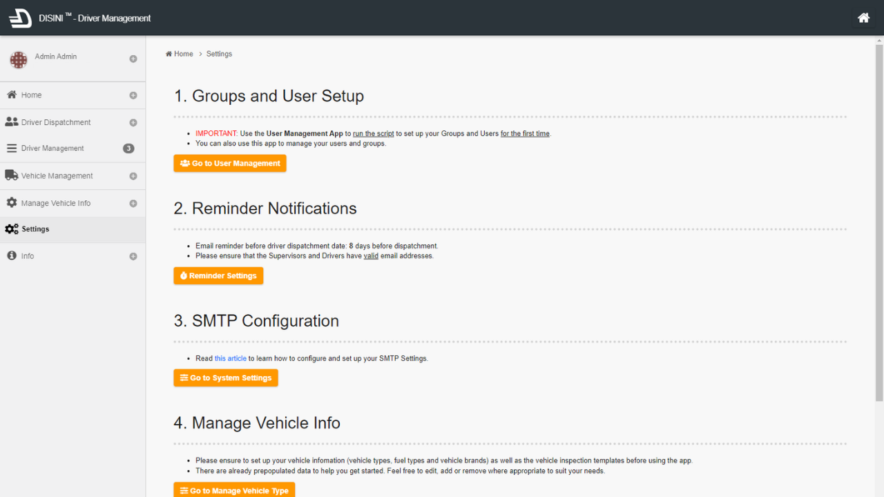 - Supervisors will be able to set reminder notifications for the drivers of upcoming dispatchment process.