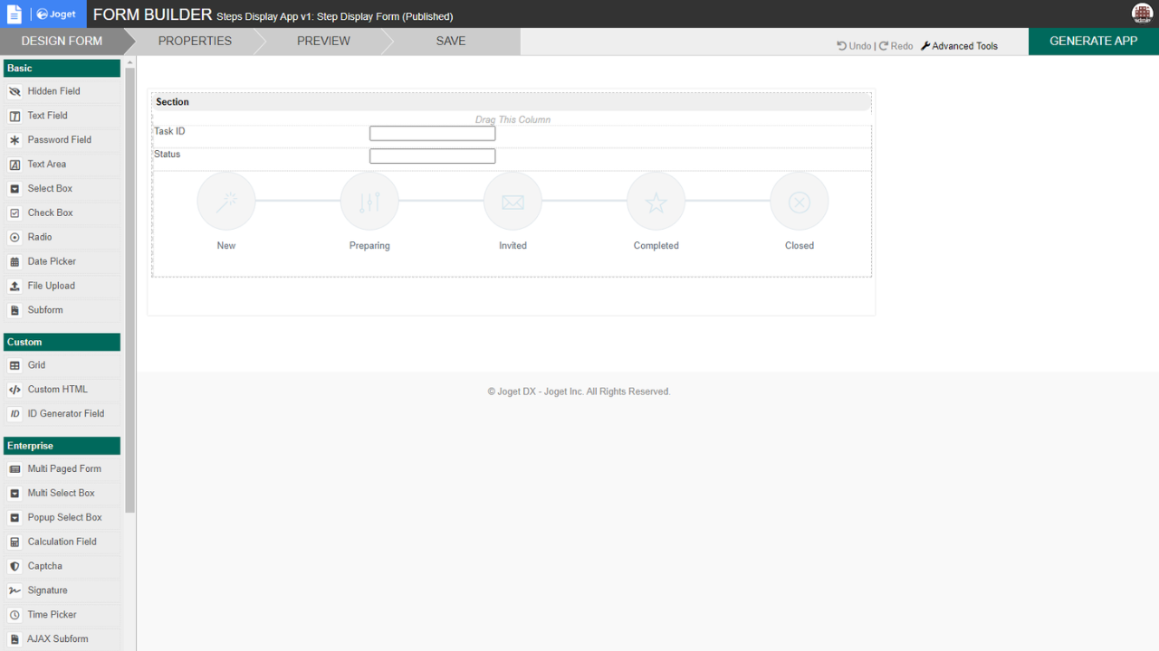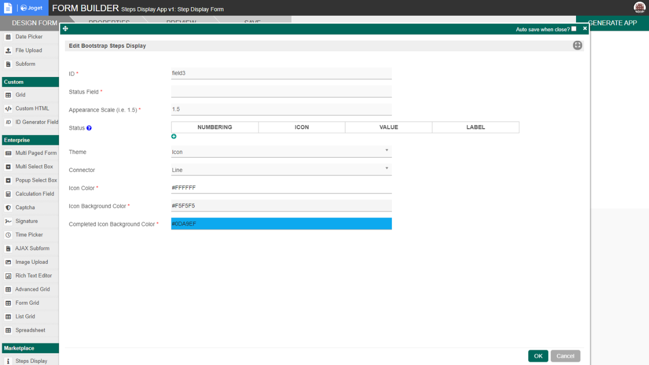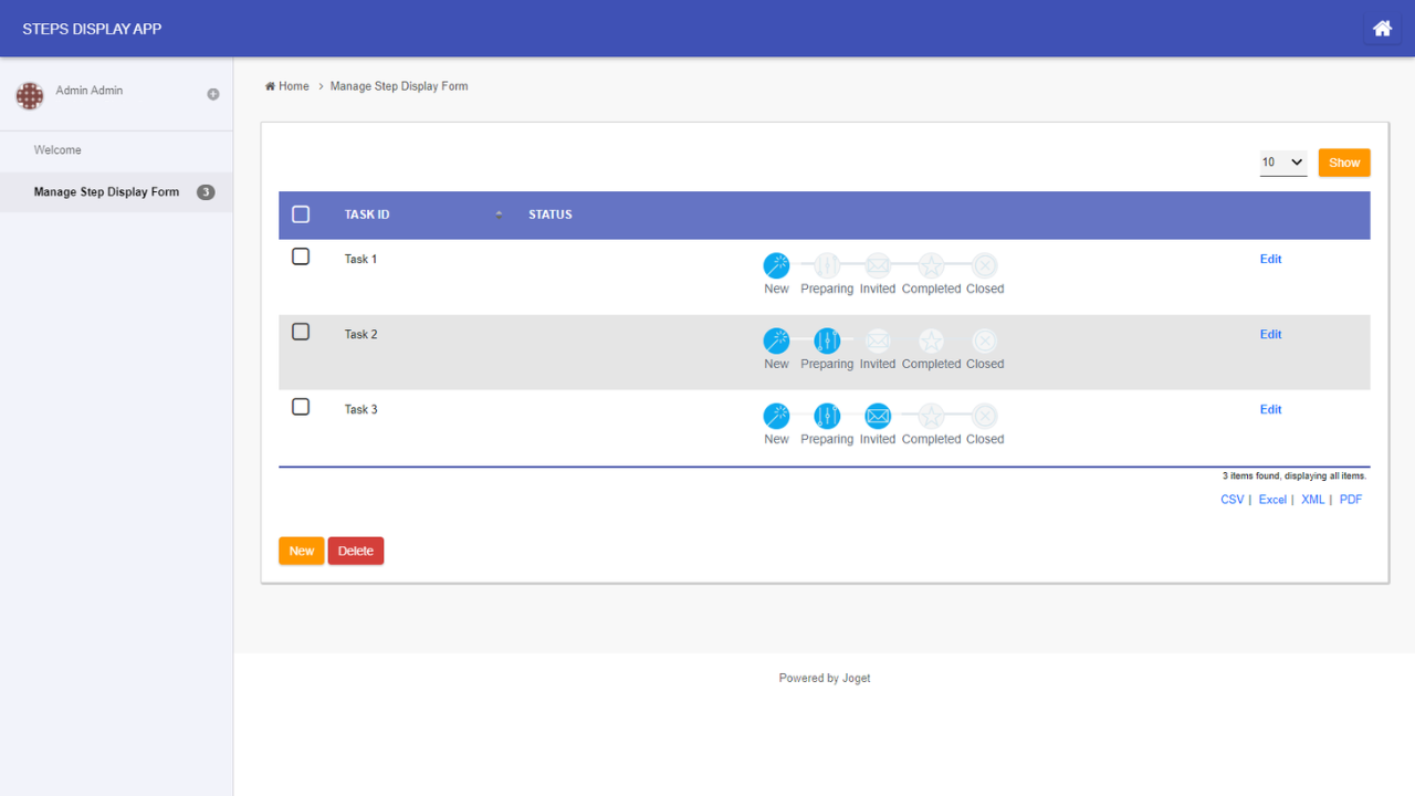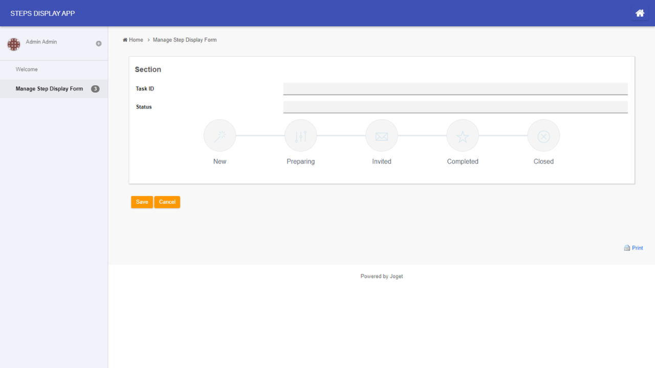 This form element is used to display status in steps with 2 presentation styles. Please refer to the documentation for more information.