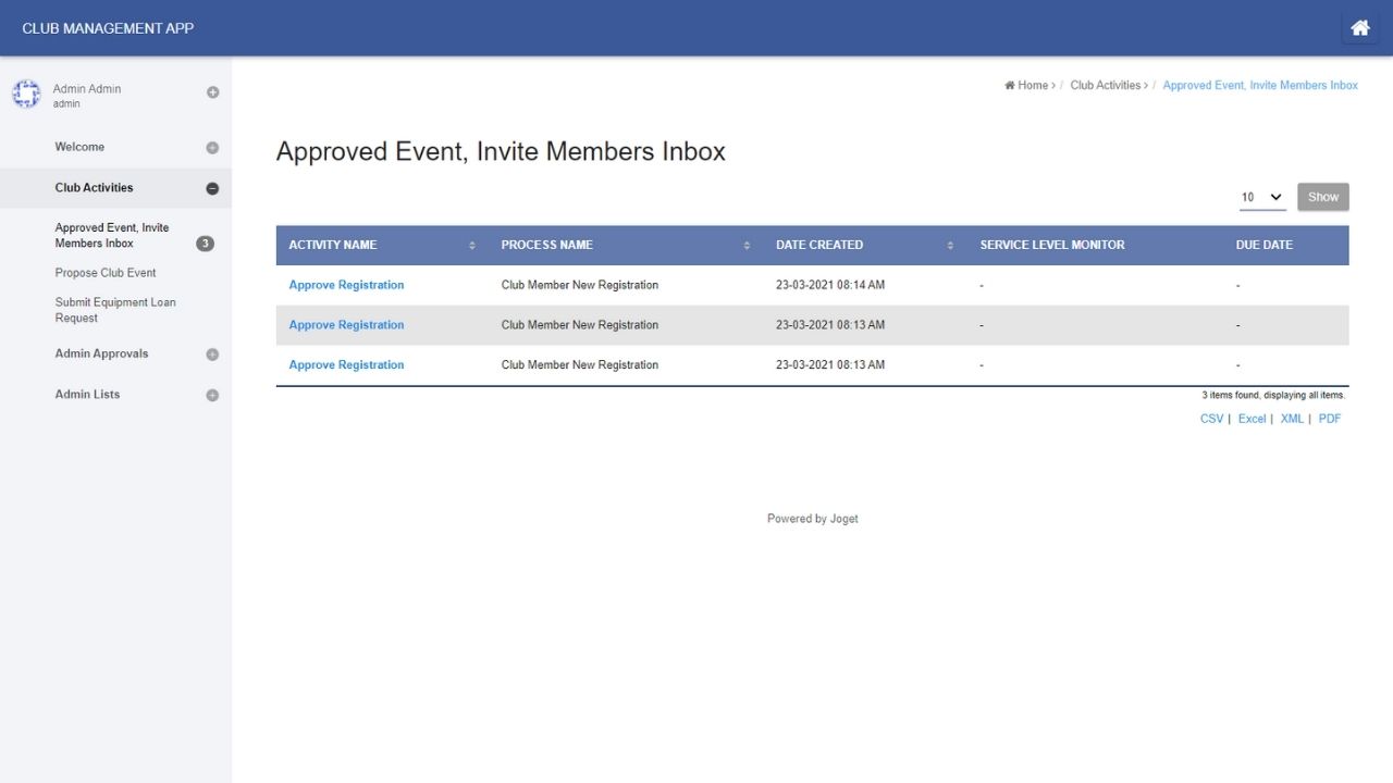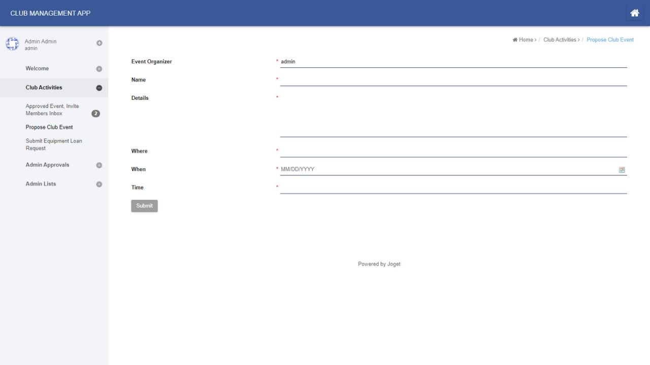Club Event Managers can propose club events and send out invites to club members.