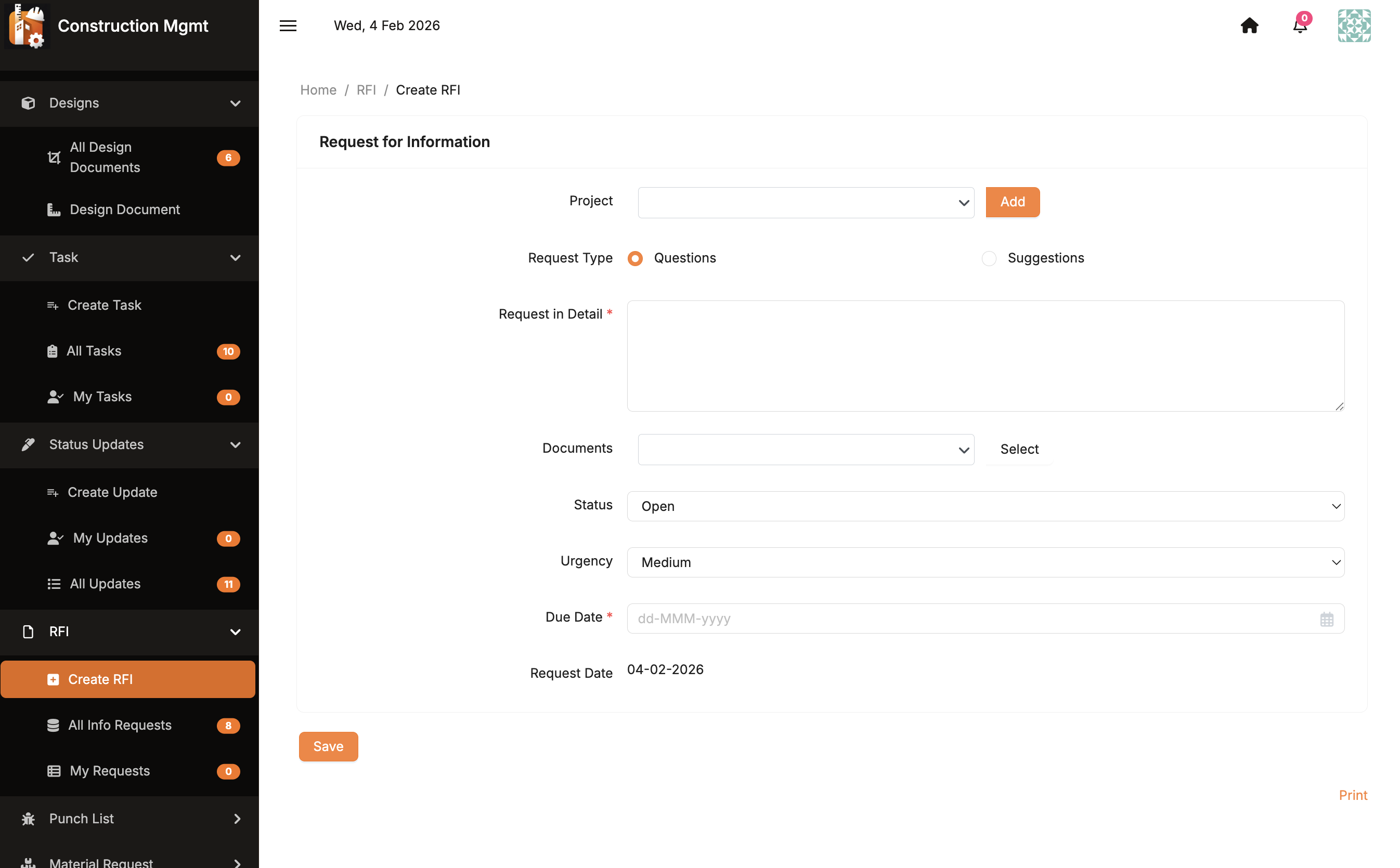 Plan smarter. Track precisely. Deliver on time. This Construction Management Application centralizes project execution from planning to handover. It unifies budgets, procurement, tasks, quality control, RFIs, and reporting into one structured platform replacing spreadsheets and disconnected tools with real-time visibility, controlled workflows, and full audit traceability. Designed for contractors, developers, engineering teams, and project managers who need clarity, control, and accountability across every active site.