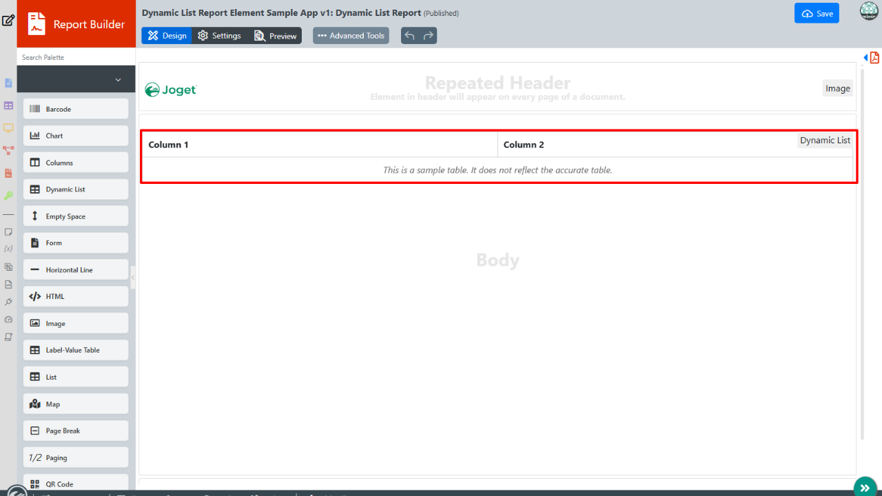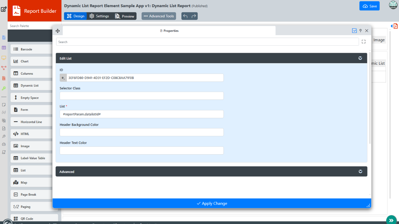 - Dynamic List Report Element - Use the datalist ID from datalist action by using #reportParam.datalistId# to generate dynamic list in report.