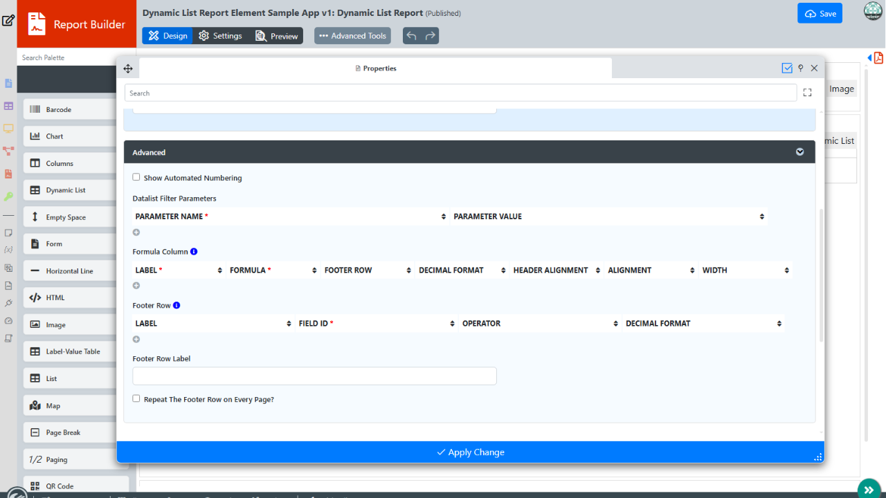 - Dynamic List Download Report Datalist Action - Button in datalist to pass datalist ID to report element