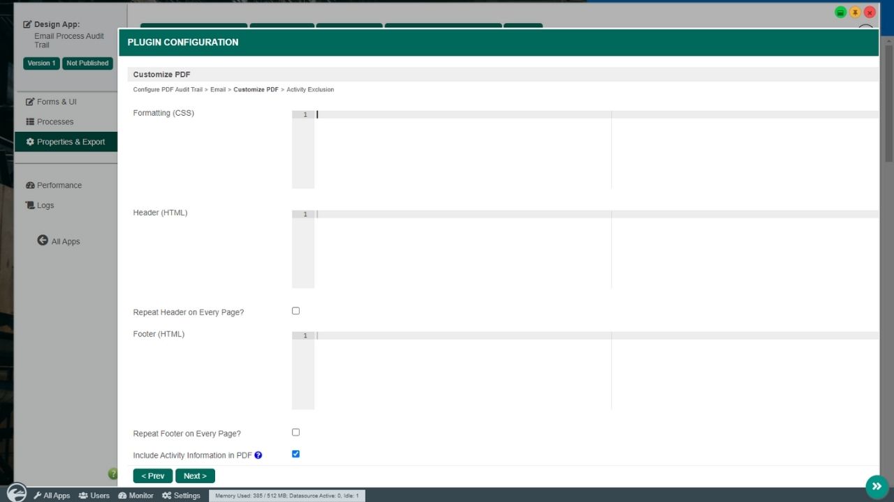 The Process Audit Trail PDF plugin is a Plugin Default Properties in individual apps.
