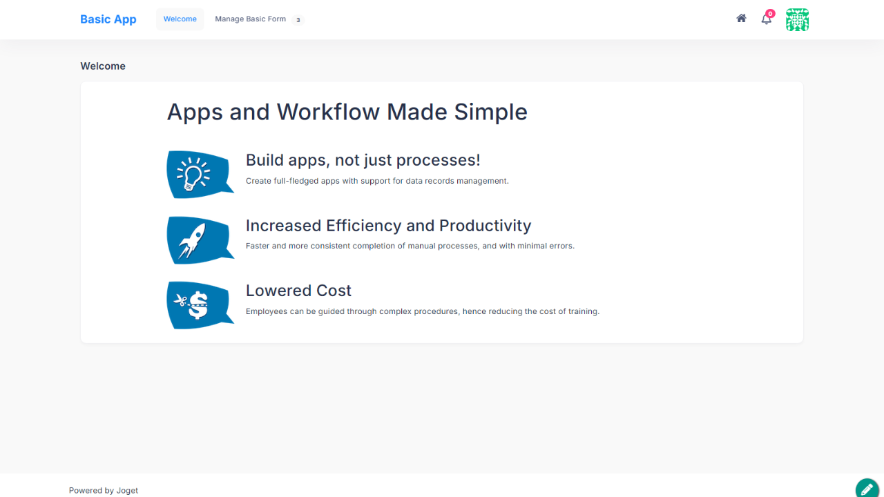 - This theme is compatible with other Joget themes that support responsive views, light/dark themes, and RTL mode.