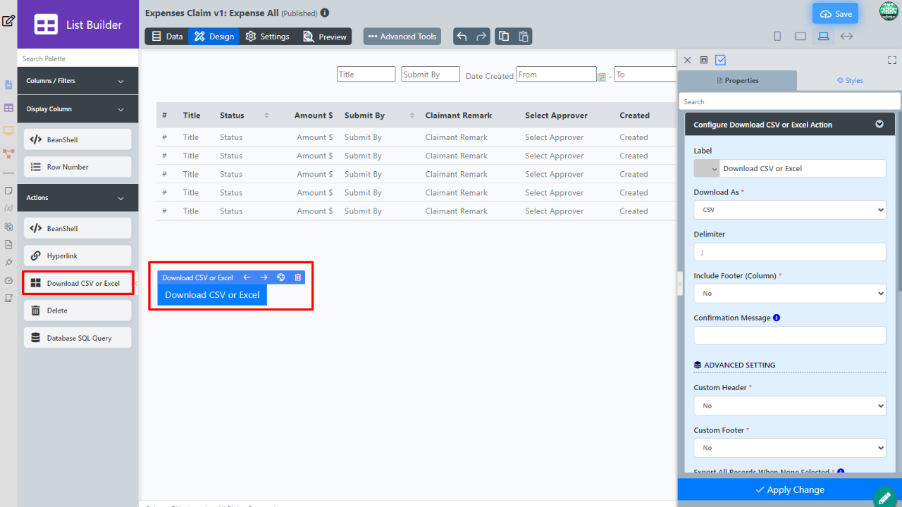 - Download CSV or Excel Action plugin is a List Action plugin which allows users to effortlessly download data in Excel or CSV formats while providing the flexibility to customize headers and footers.