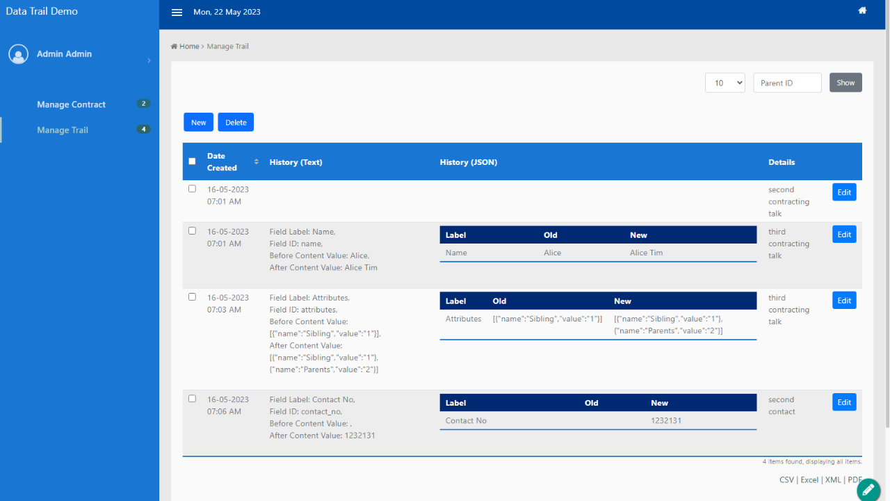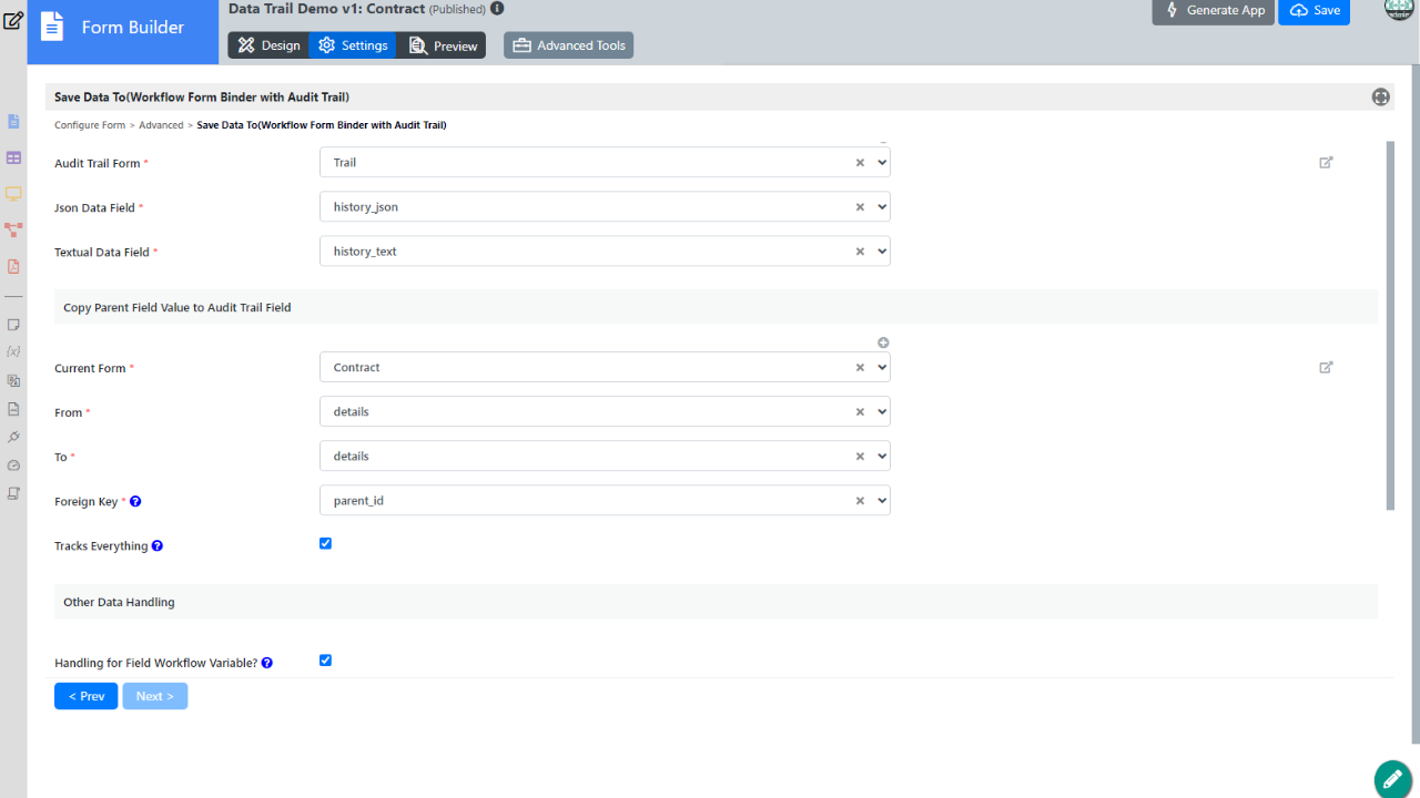 Refer to Data Trail Demo App as well as https://github.com/jogetoss/form-store-binder-audit-trail for more information.