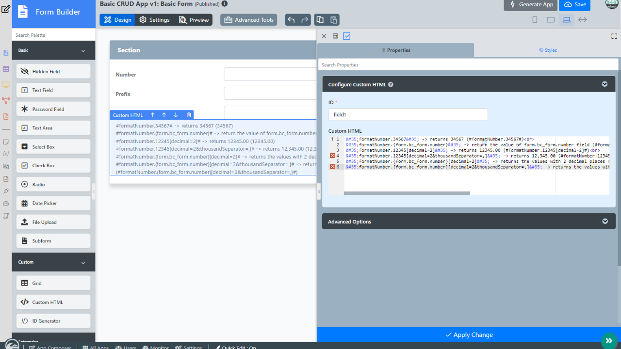 - #formatNumber.{form.table.field} -> return the value of form.table.field