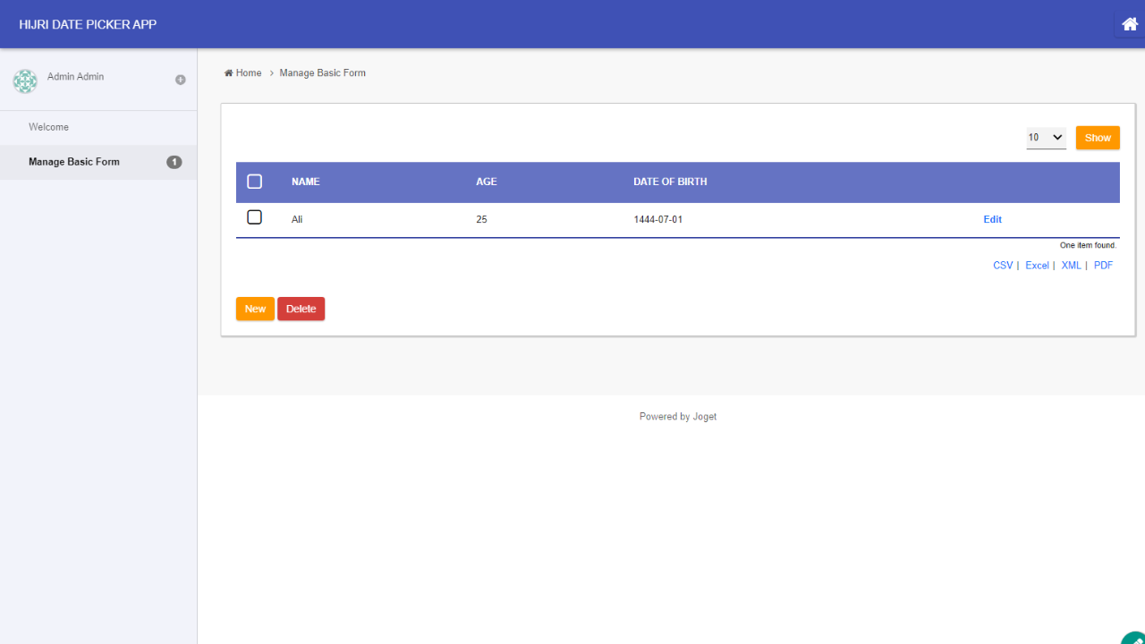 Hijri Date Picker plugin is a form element which allows to select/pick date in Hijri format. It also comes with a datalist formatter to display the date as intended in a datalist.