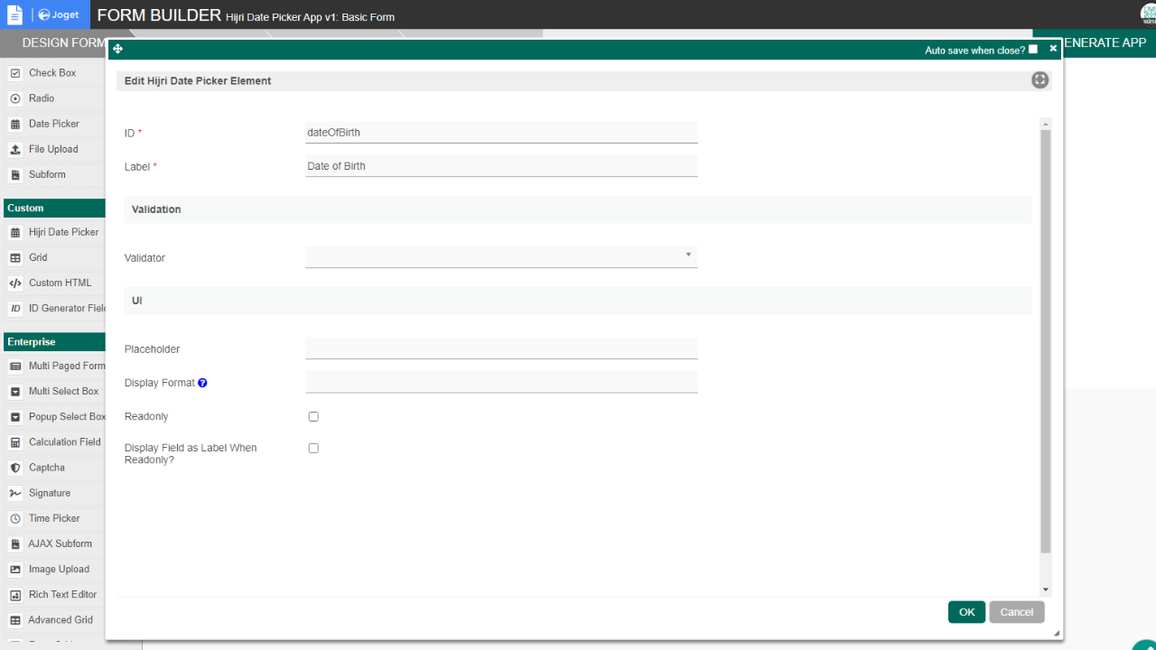 - Comes with a datelist formatter (Hijri Date Formatter) to format dates to Hijri or Gregorian Calendar format