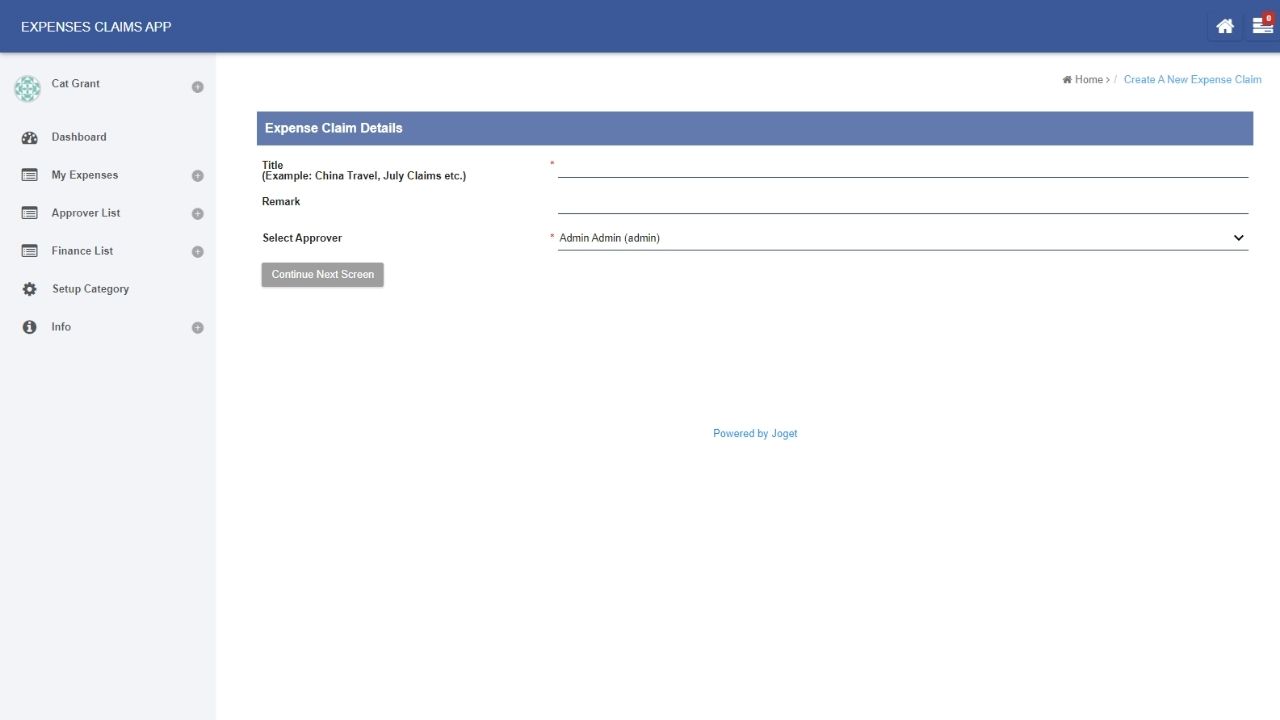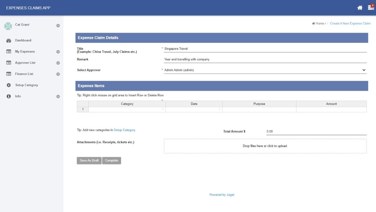 The Expenses Claim app has been written for Joget v6 Enterprise.