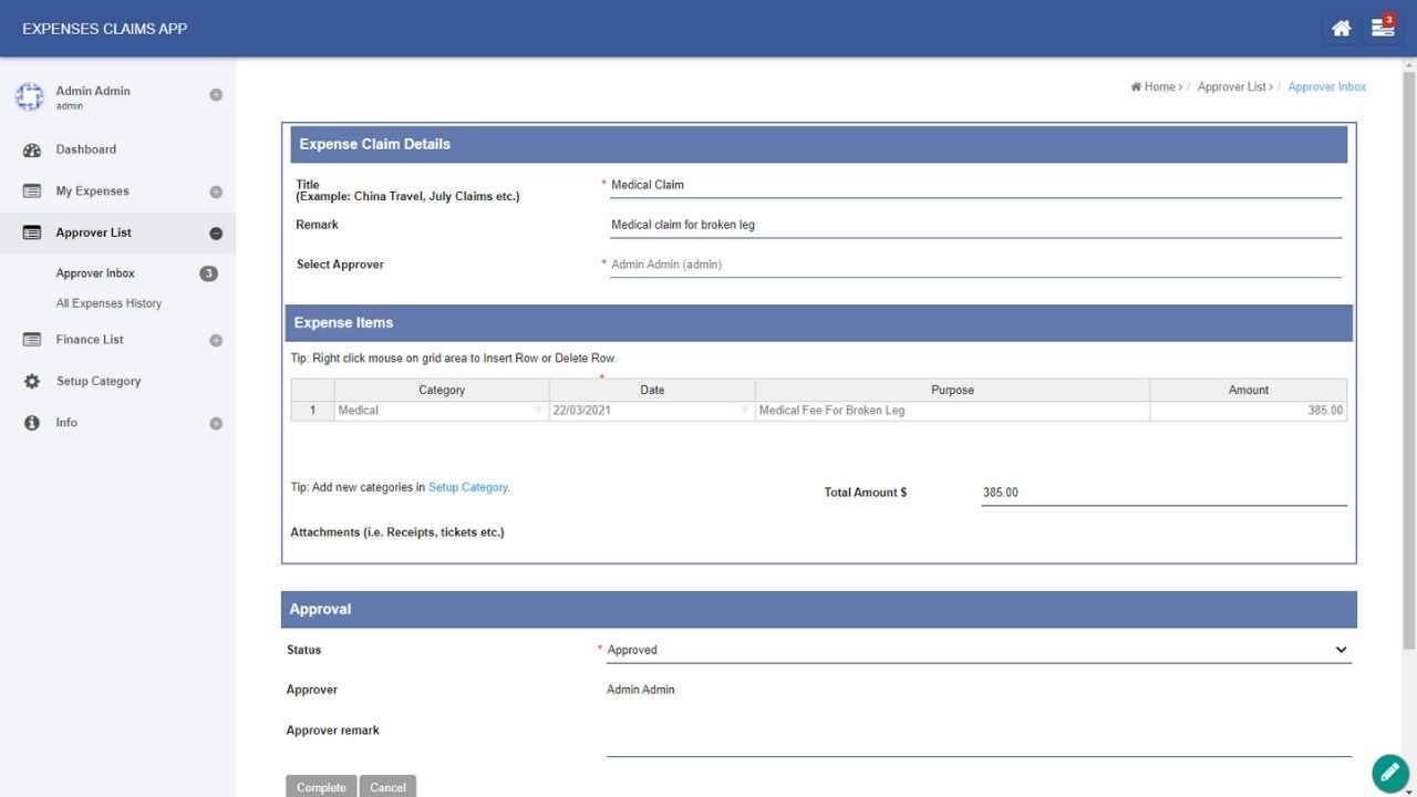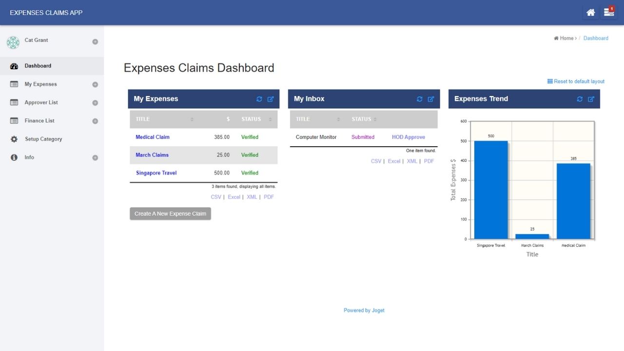 The Expenses Claim app was designed for employees to submit and head of departments (HOD) to approve expense claims online.