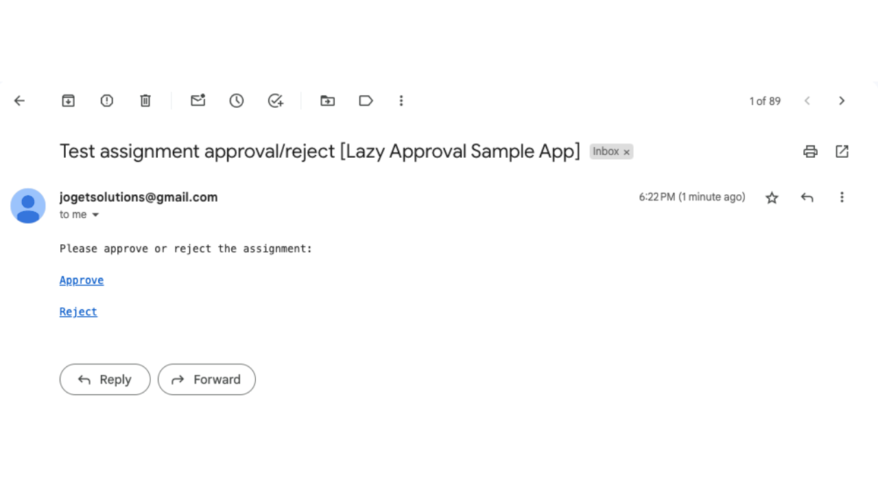 - A sample use case will be sending the URL via Email, then the approver will click on Approve URL / Reject URL to directly approve / reject the assignment.