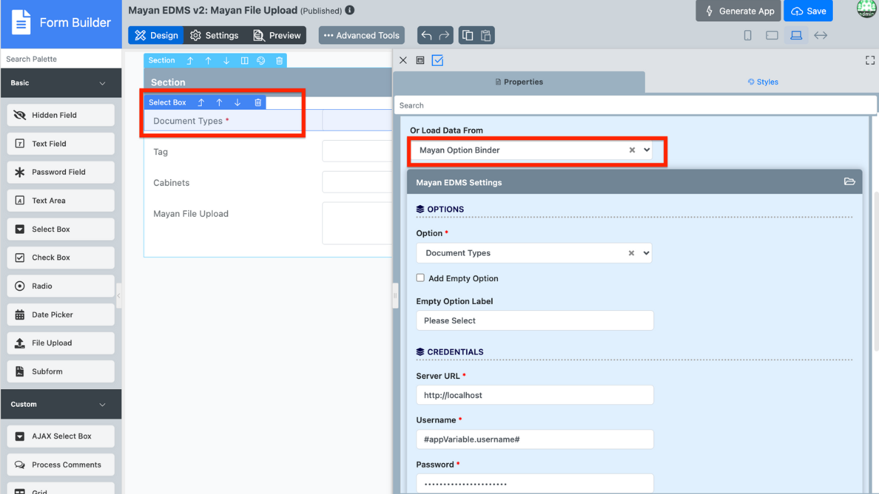 - Mayan Option Binder - Allows users to populate the values of Document Types, Cabinets and Tags from Mayan EDMS.