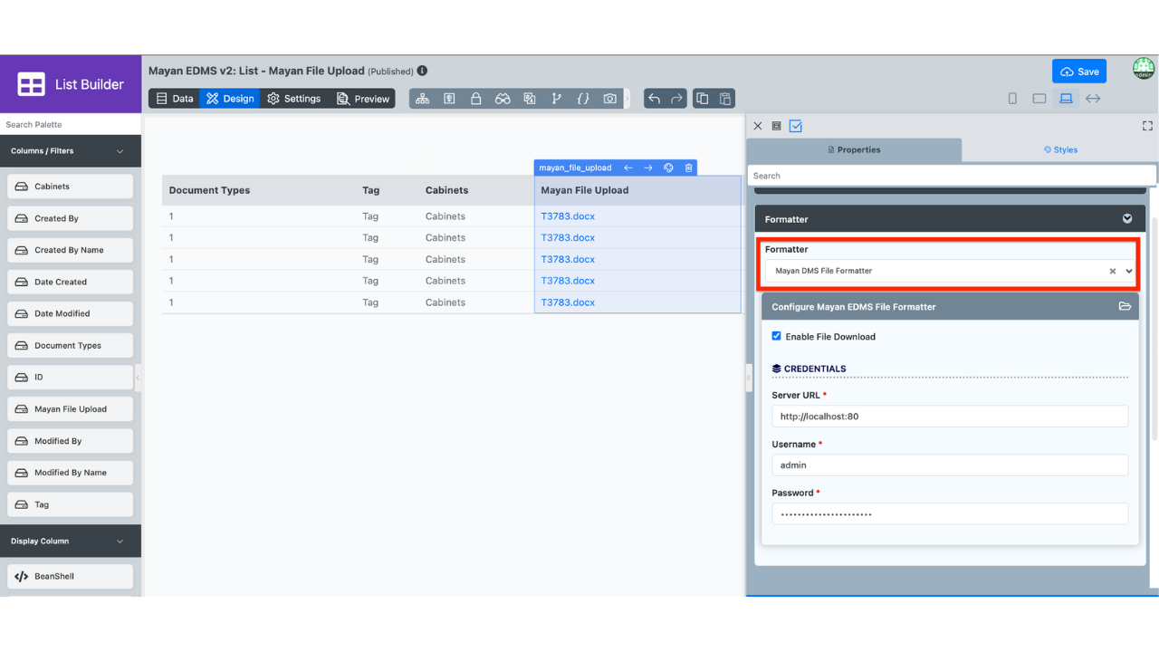 - Mayan File Formatter - Allows users to format the filename and download the file directly from the datalist.