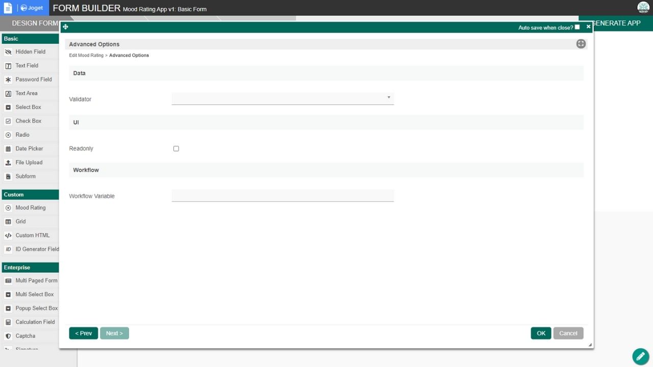 Next, open the form builder to drag and drop the Mood Rating form element into your form.