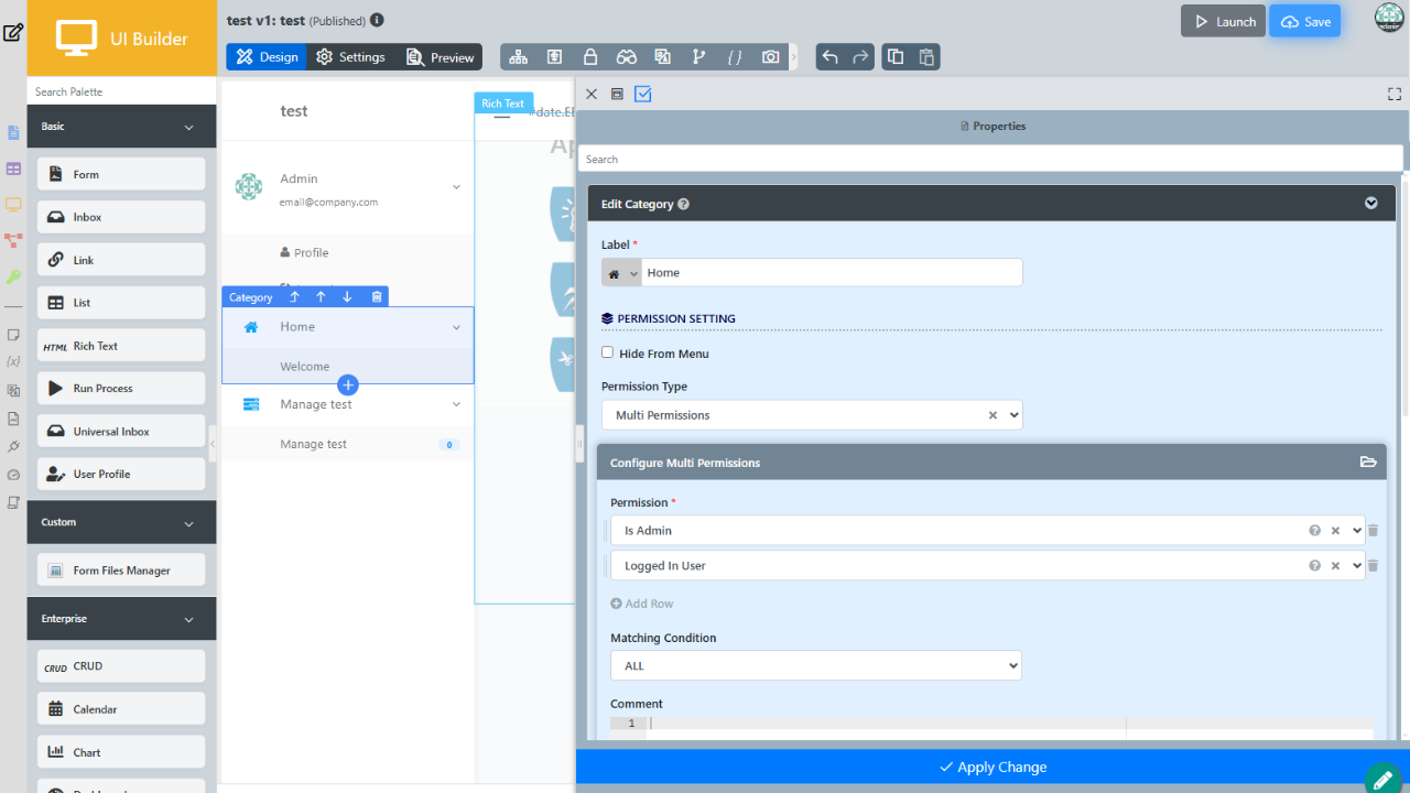 - The Multi Permission Plugin allows users to configure multiple permission plugins to be applied to an element.