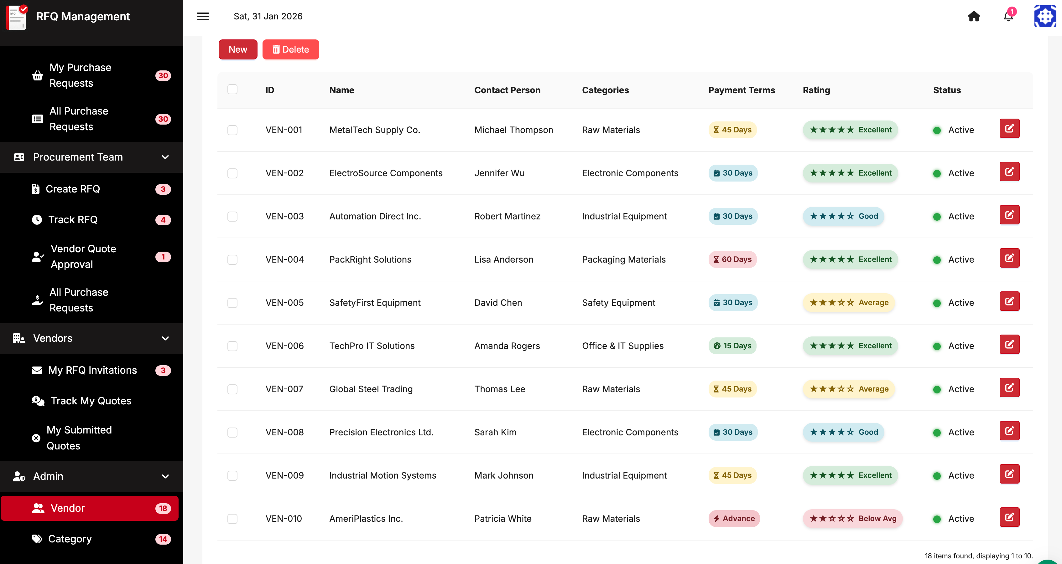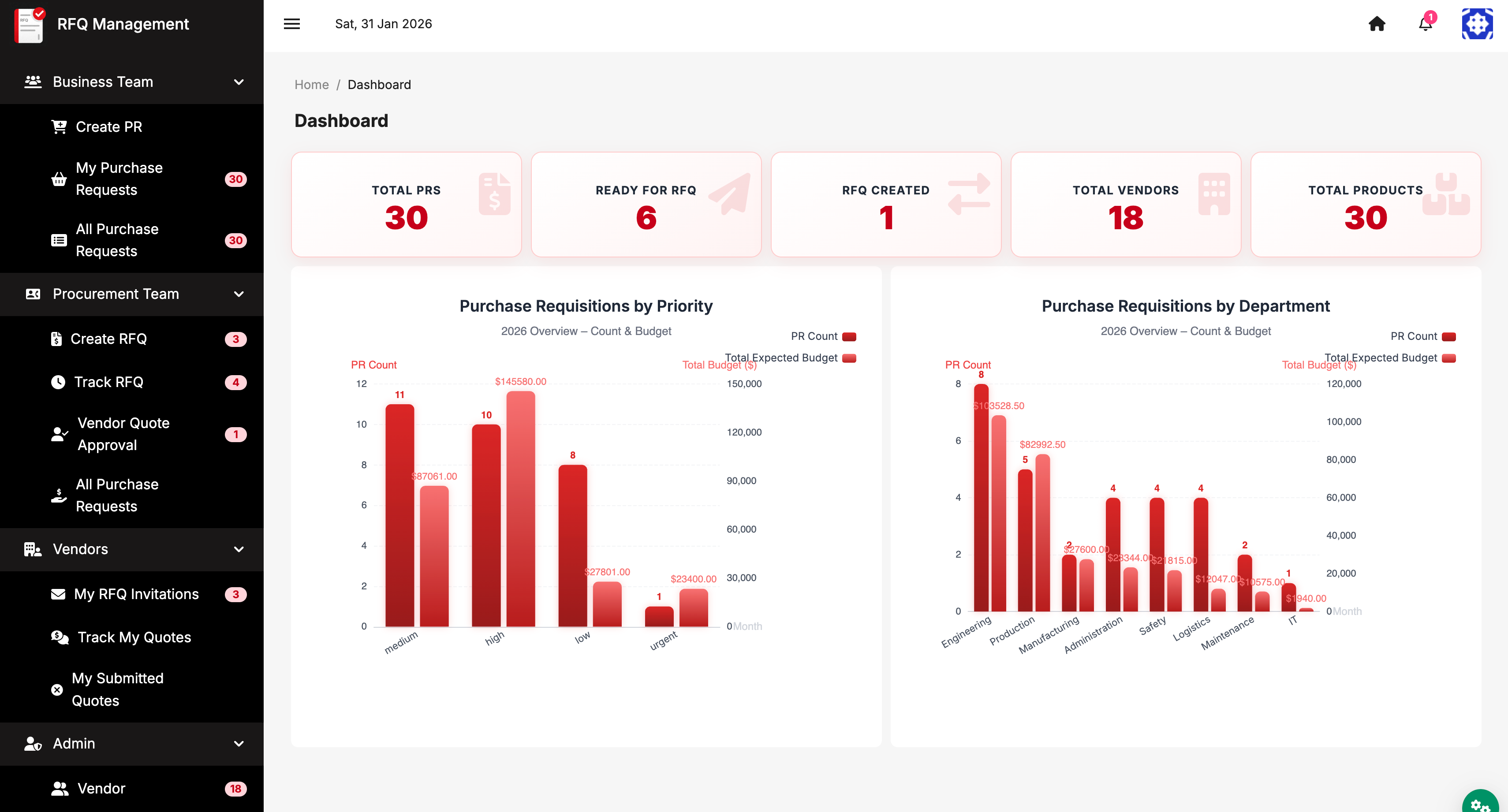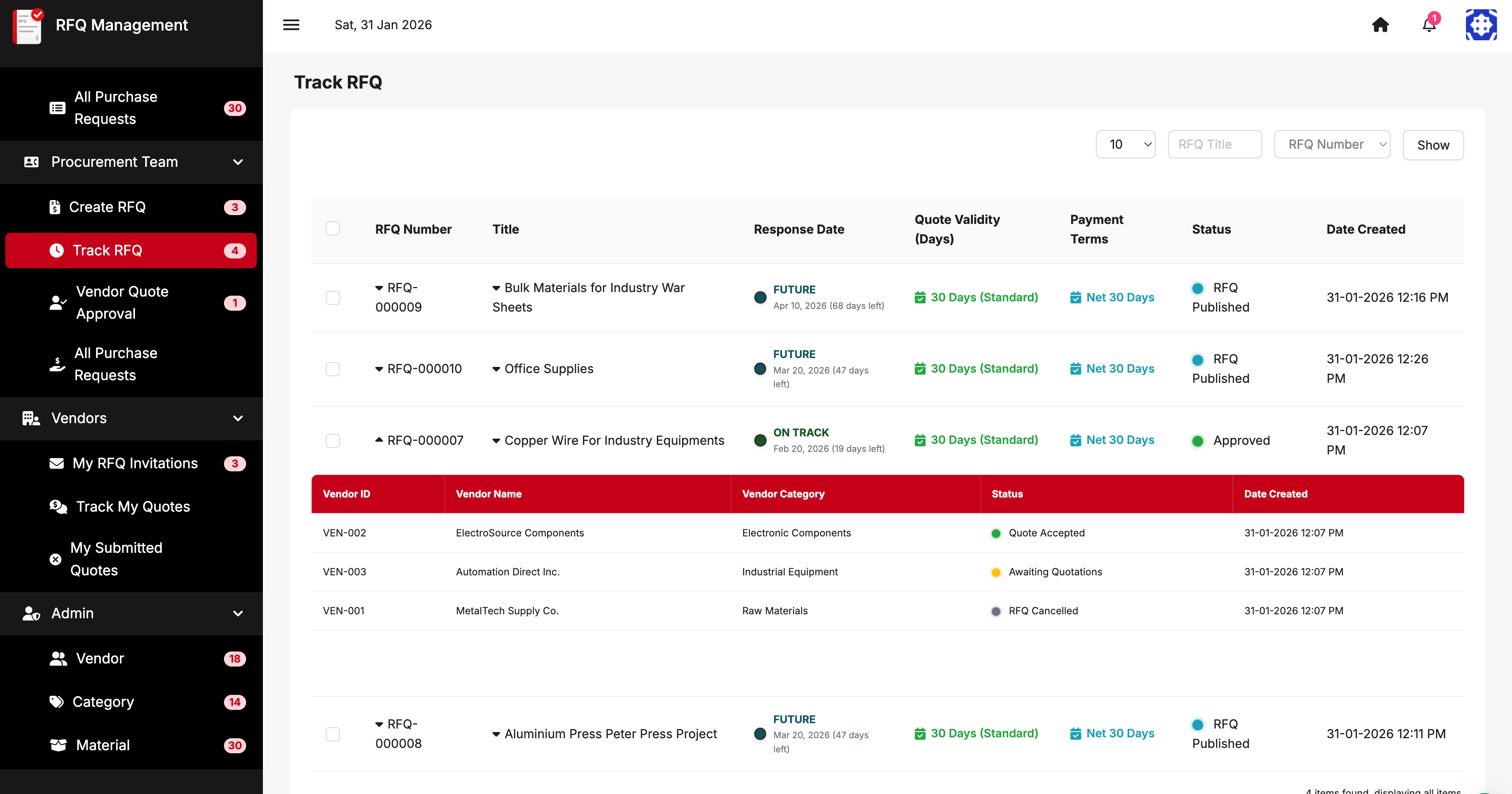 Whether you're running a manufacturing plant, engineering firm, construction project, or any organization that buys materials, services, or equipment this application gives your team complete control over the entire RFQ (Request for Quotation) lifecycle.