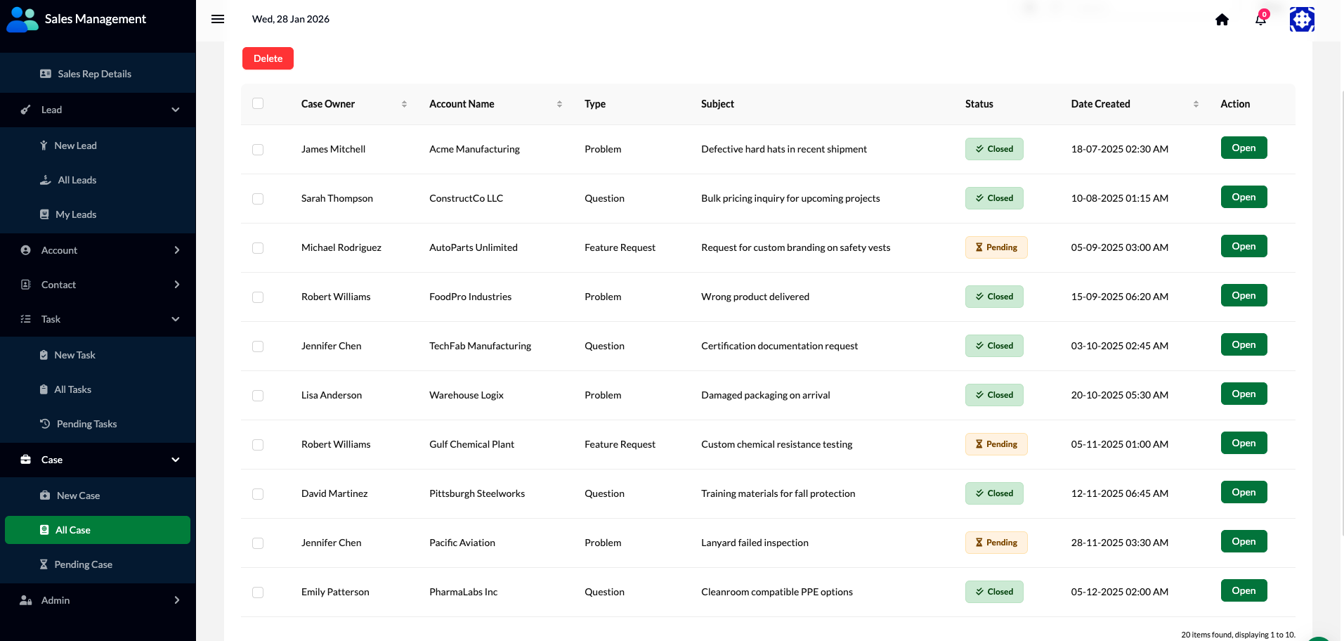 - Case Management - Handle customer support requests with categorization, priority levels and resolution.