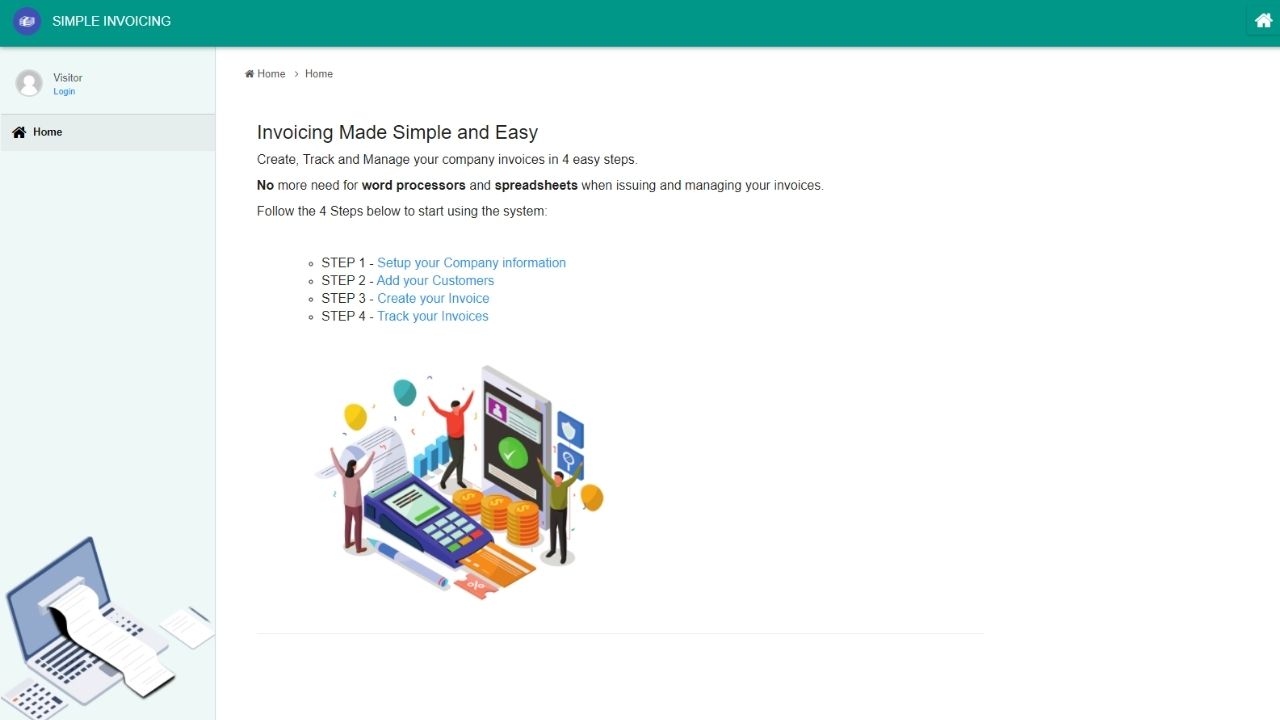 Invoicing made simple and easy! Create, track, and manage your company's invoices in 4 easy steps.