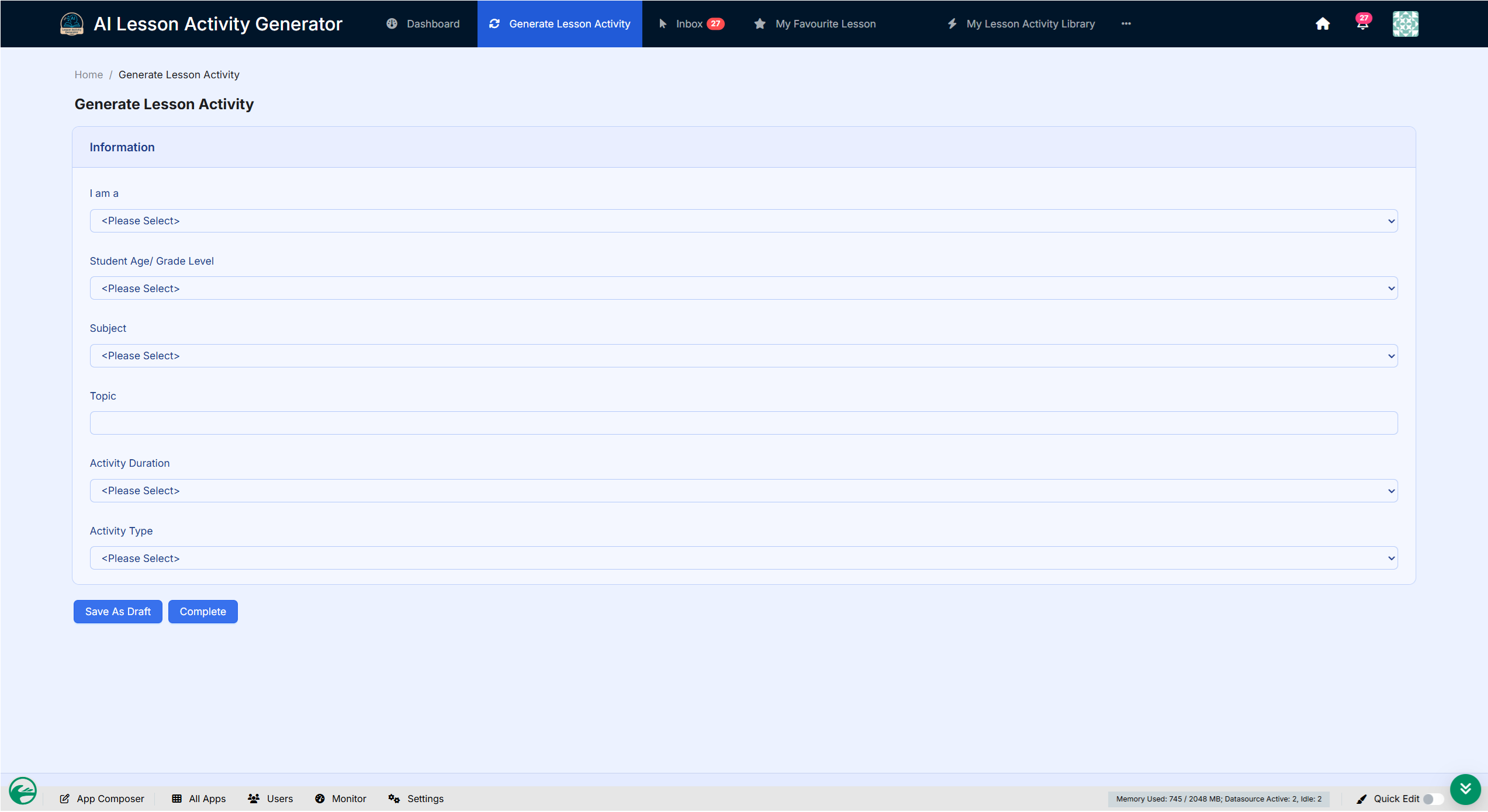 Smart Lesson Activity Generator App is a smart, AI-powered education tool that helps teachers design engaging, classroom-ready lesson activities quickly and efficiently.