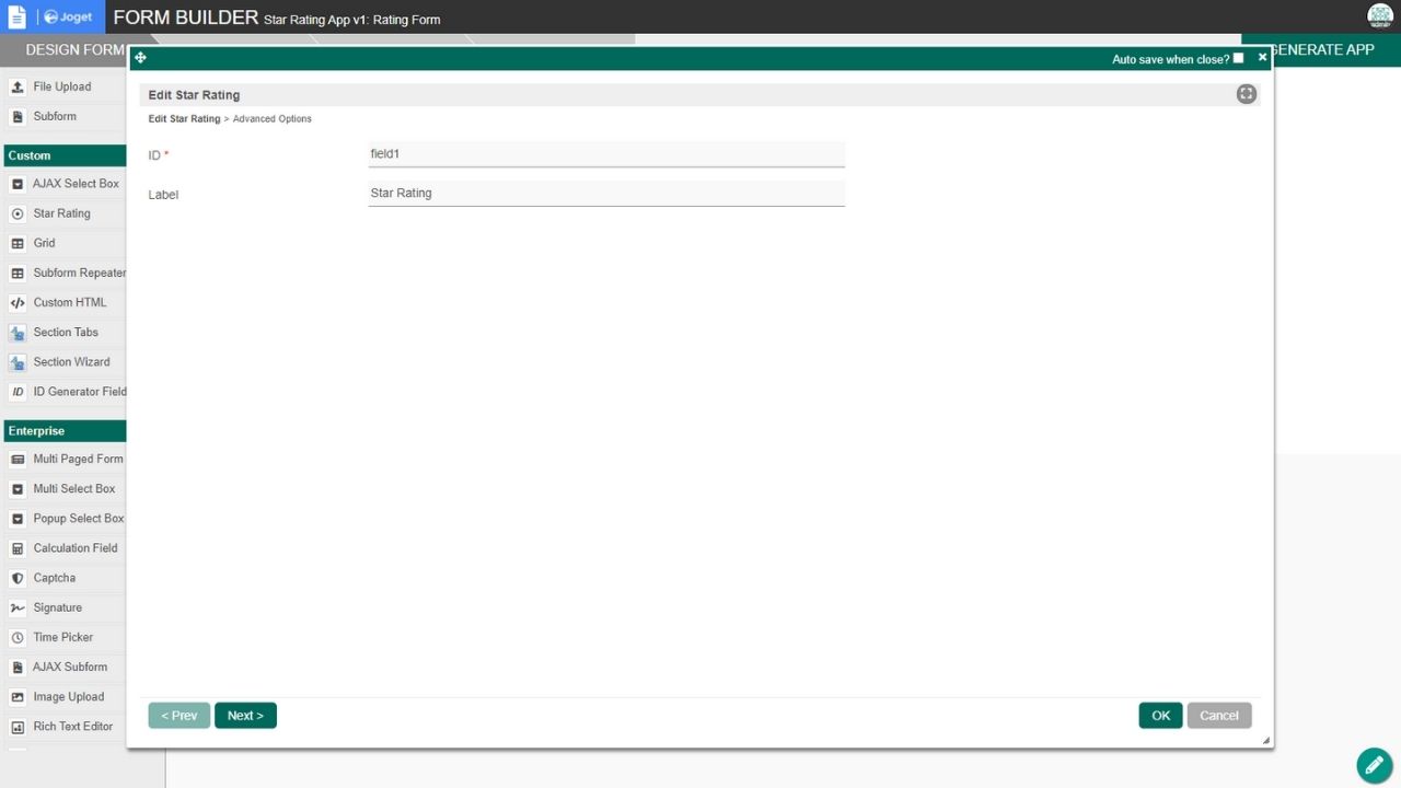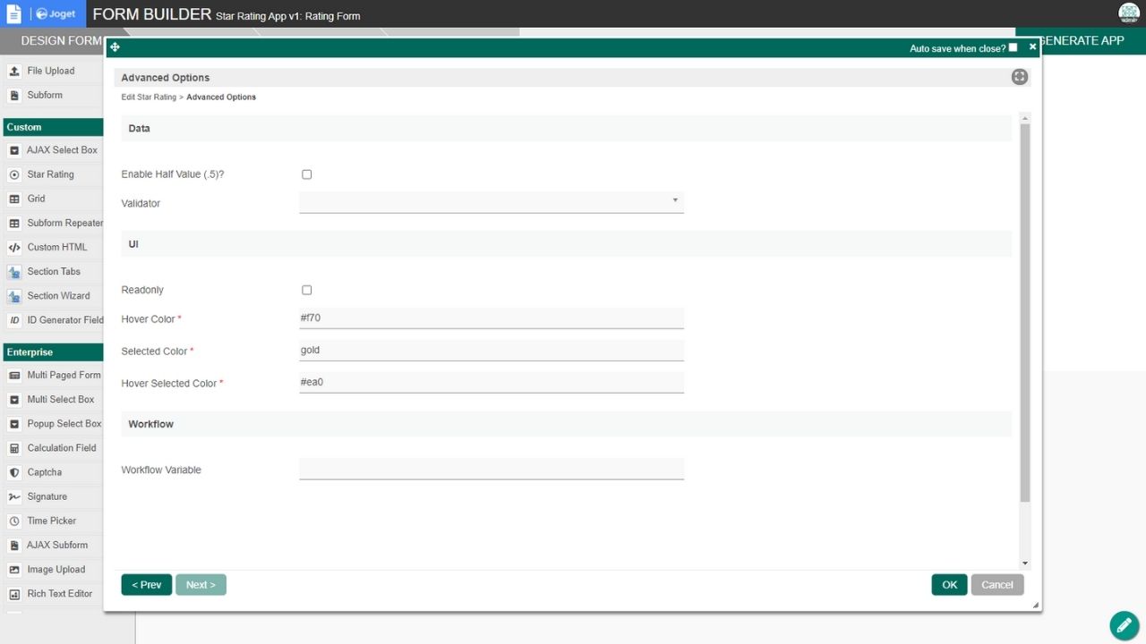 The Star Rating Plugin is a form element in Joget that users can easily click to rate your website or product etc.