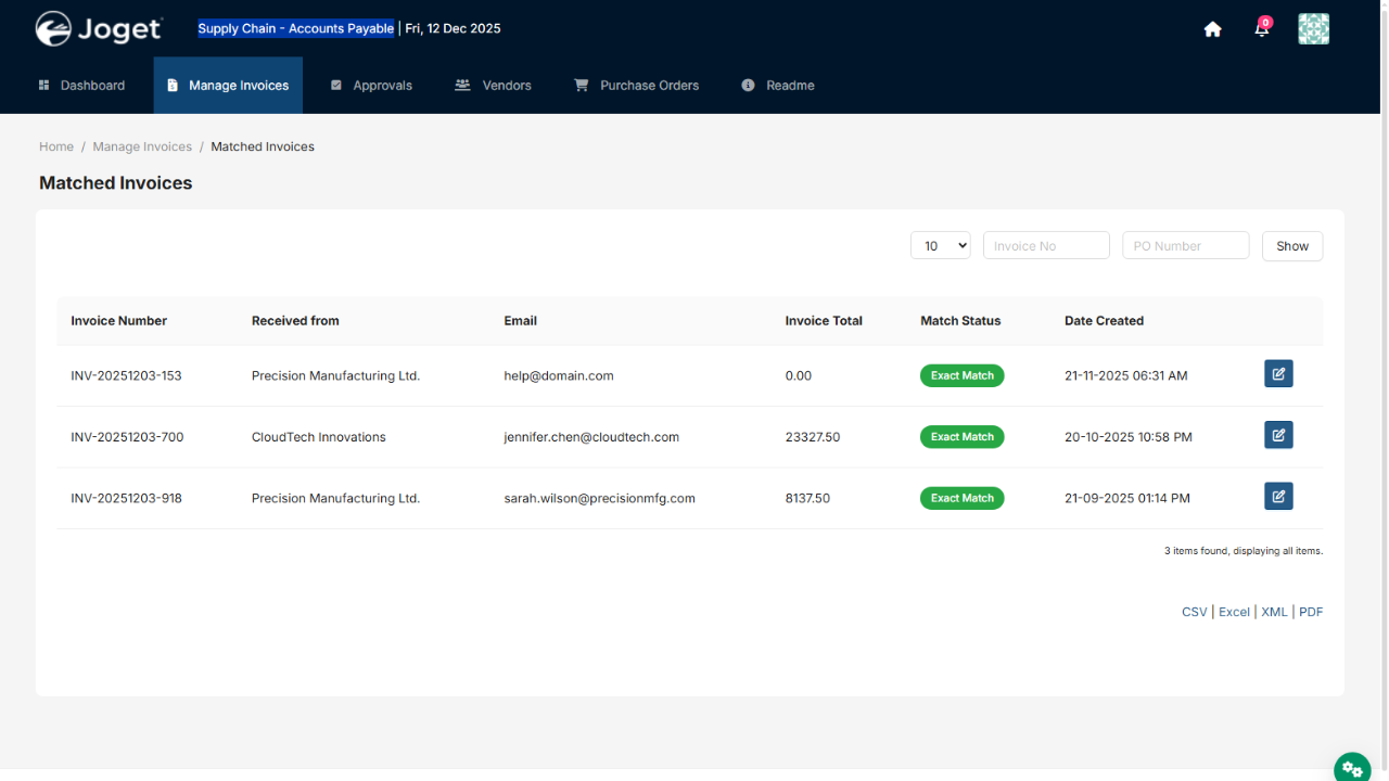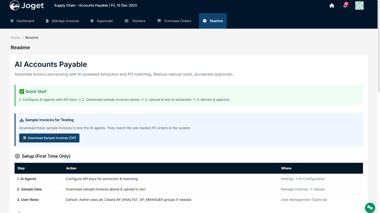 Supply Chain - Accounts Payable App automate invoice processing with AI-powered extraction and PO matching.