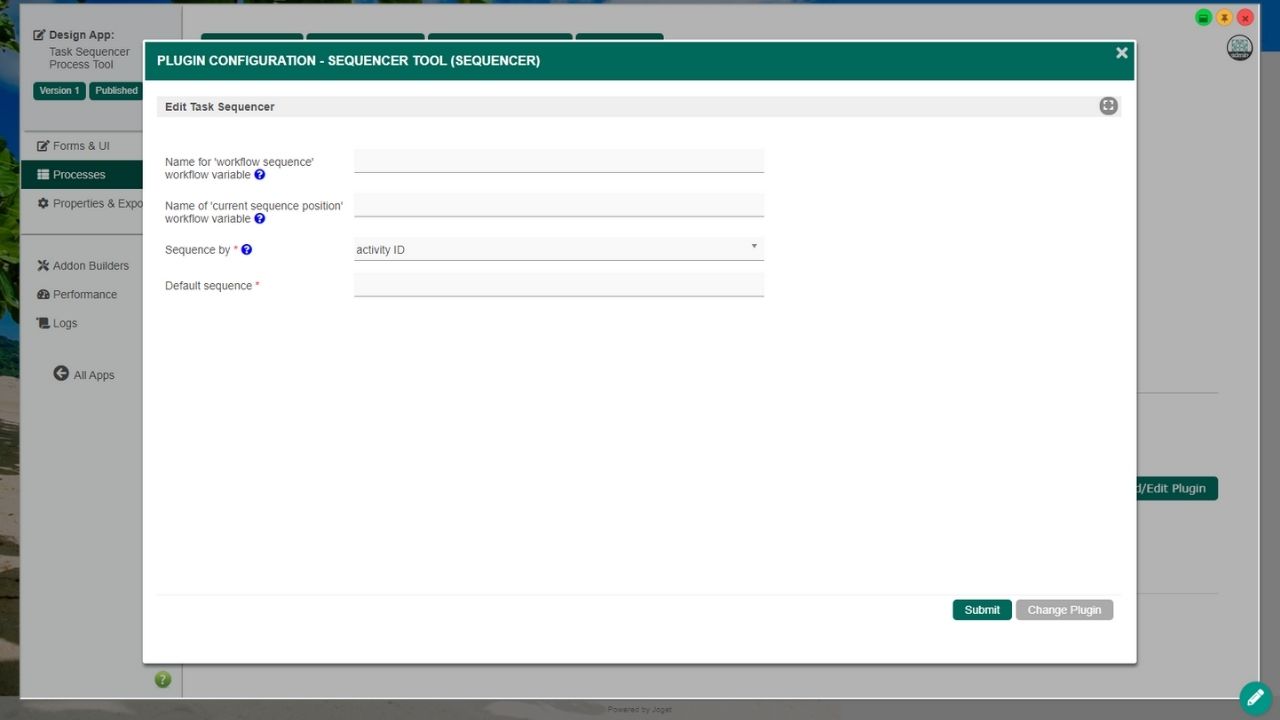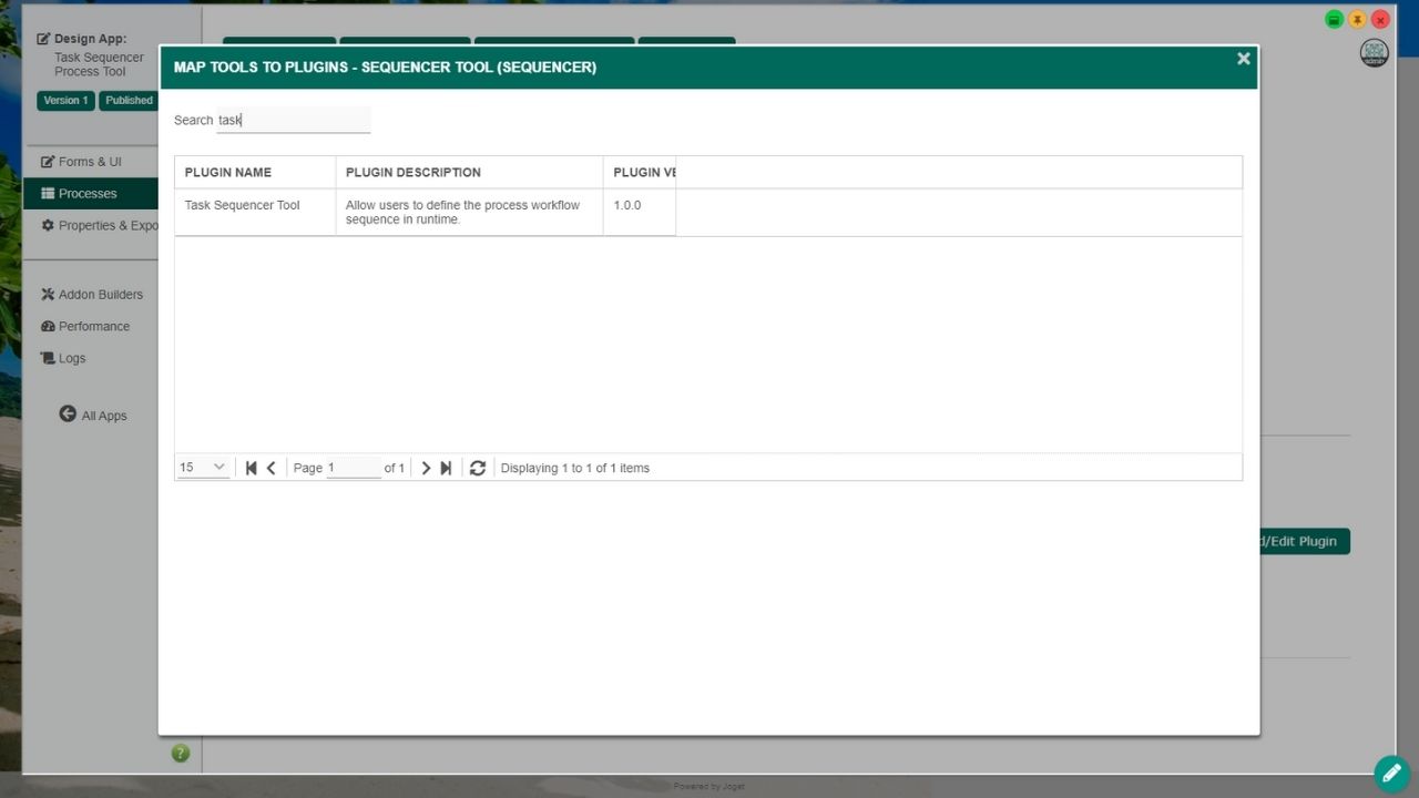 The Task Sequencer Process Tool Plugin is a Joget Enterprise plugin used in a workflow process in "Map Tools To Plugin" tab.