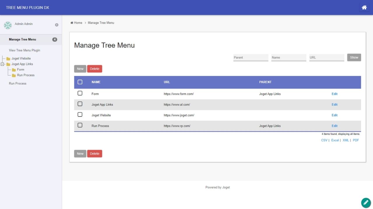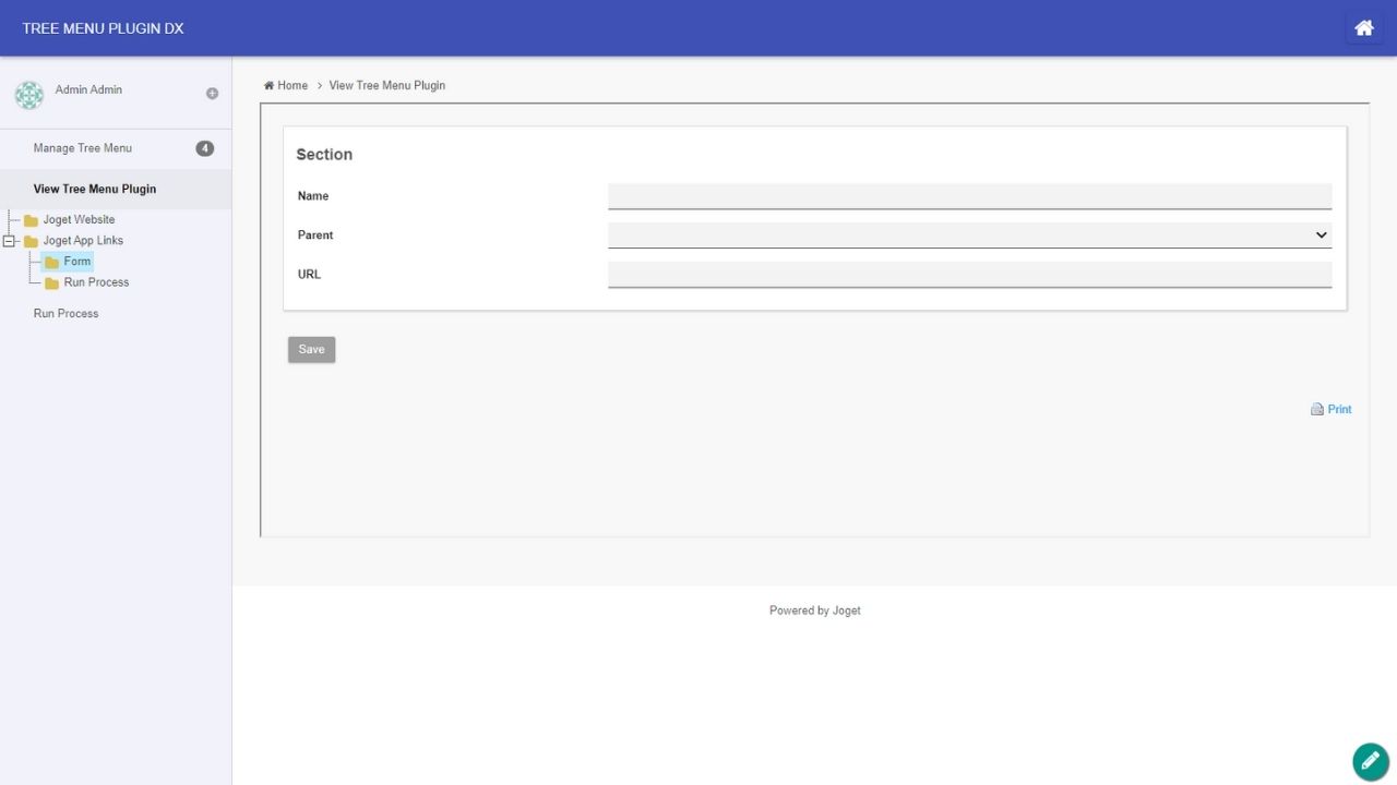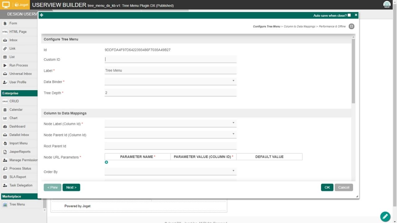 The Tree Menu plugin is a userview plugin that will dynamically draw a tree menu in the userview sidebar menu based on database records.
