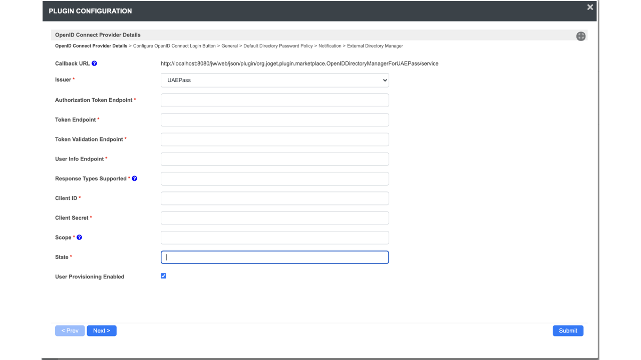 - UAE Pass Directory Manager plugin allow users to single sign-on (SSO) to Joget using UAE Pass.