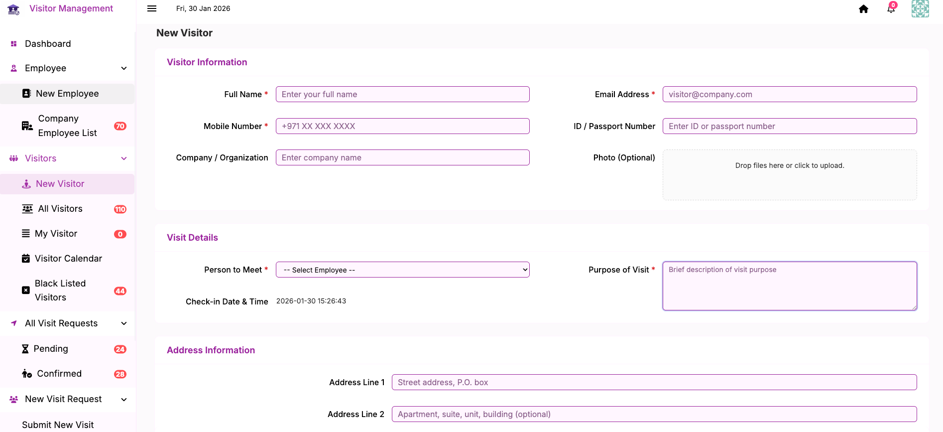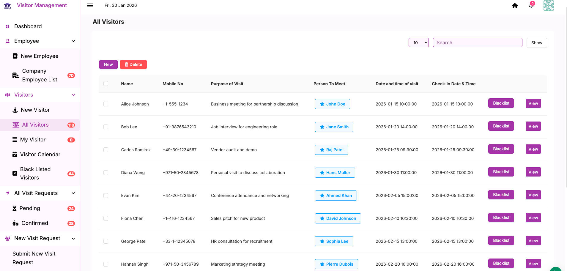 Visitor Management App helps track your visitors and know who enters your building. Whether you manage a corporate office or smaller workplace, this application helps you manage every visitor efficiently.