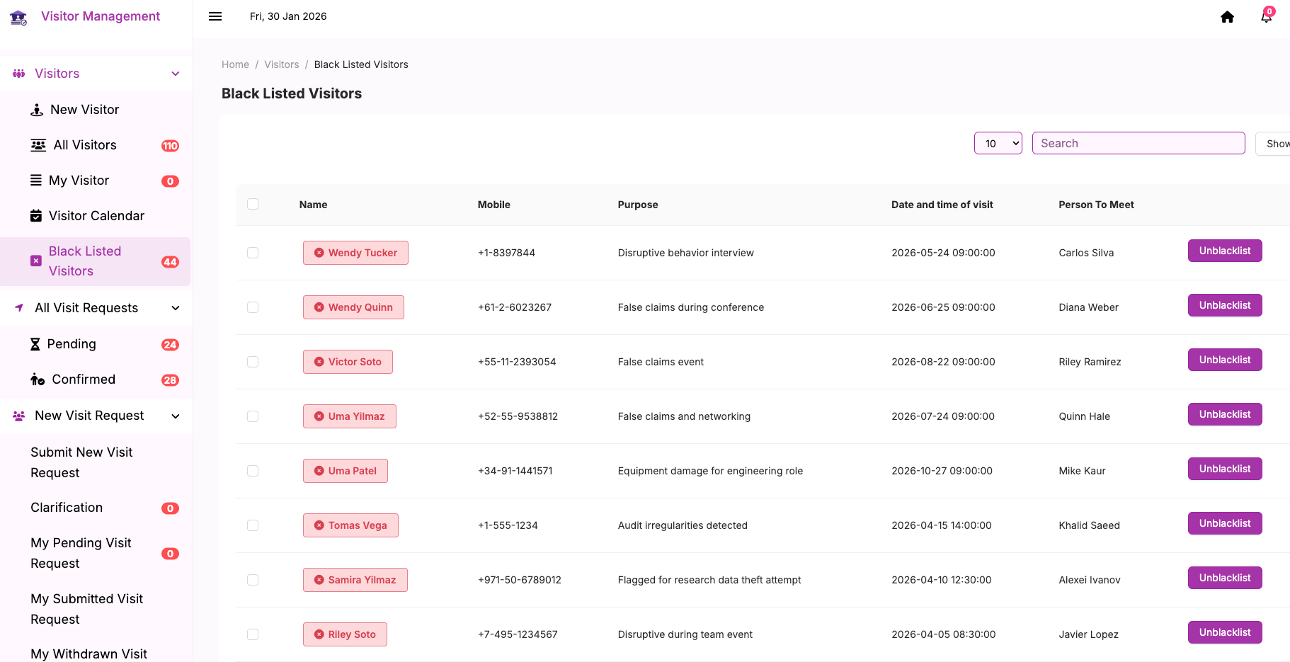 - Real-Time Dashboard - Get a complete view of who's visiting whom in your workplace. Filter